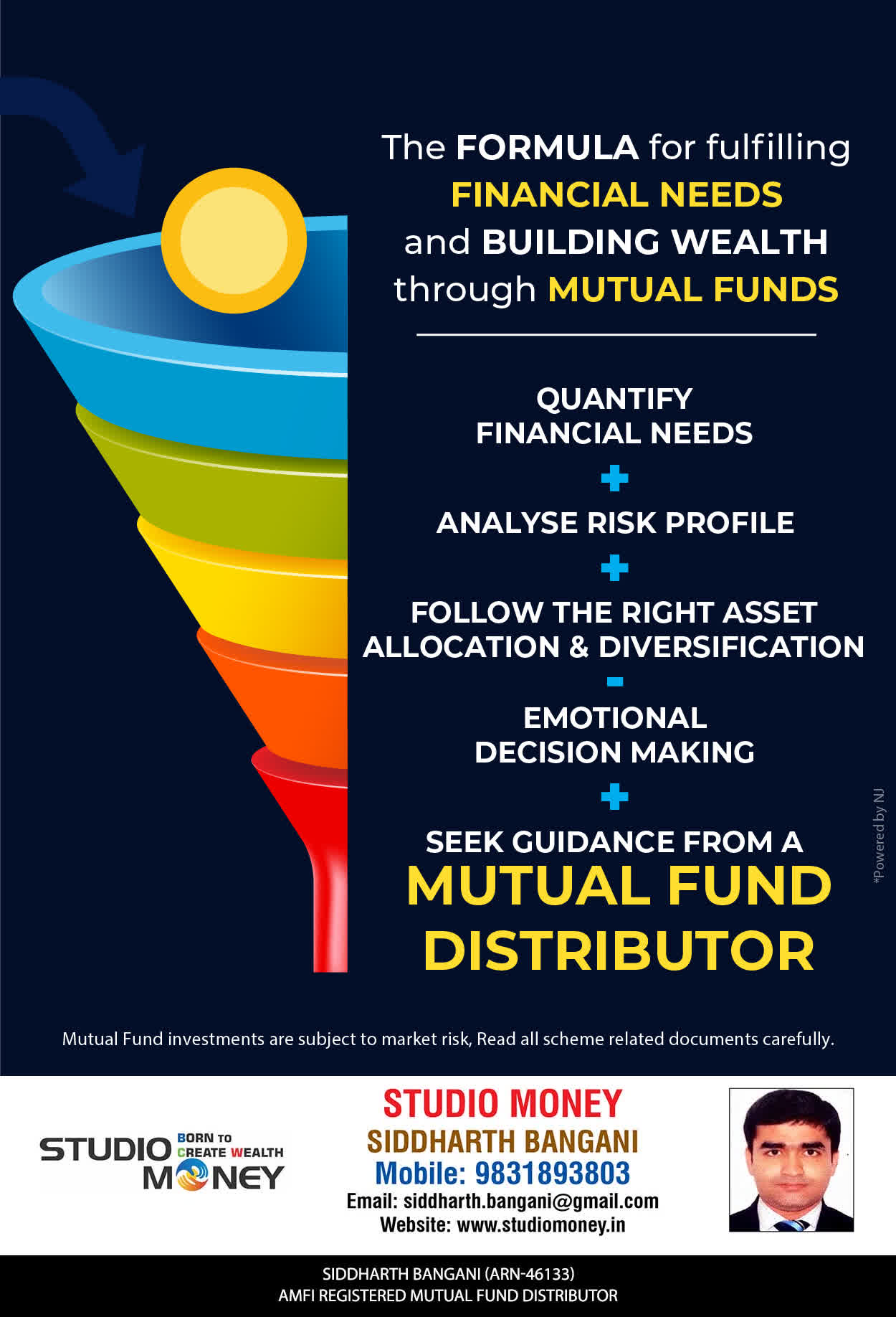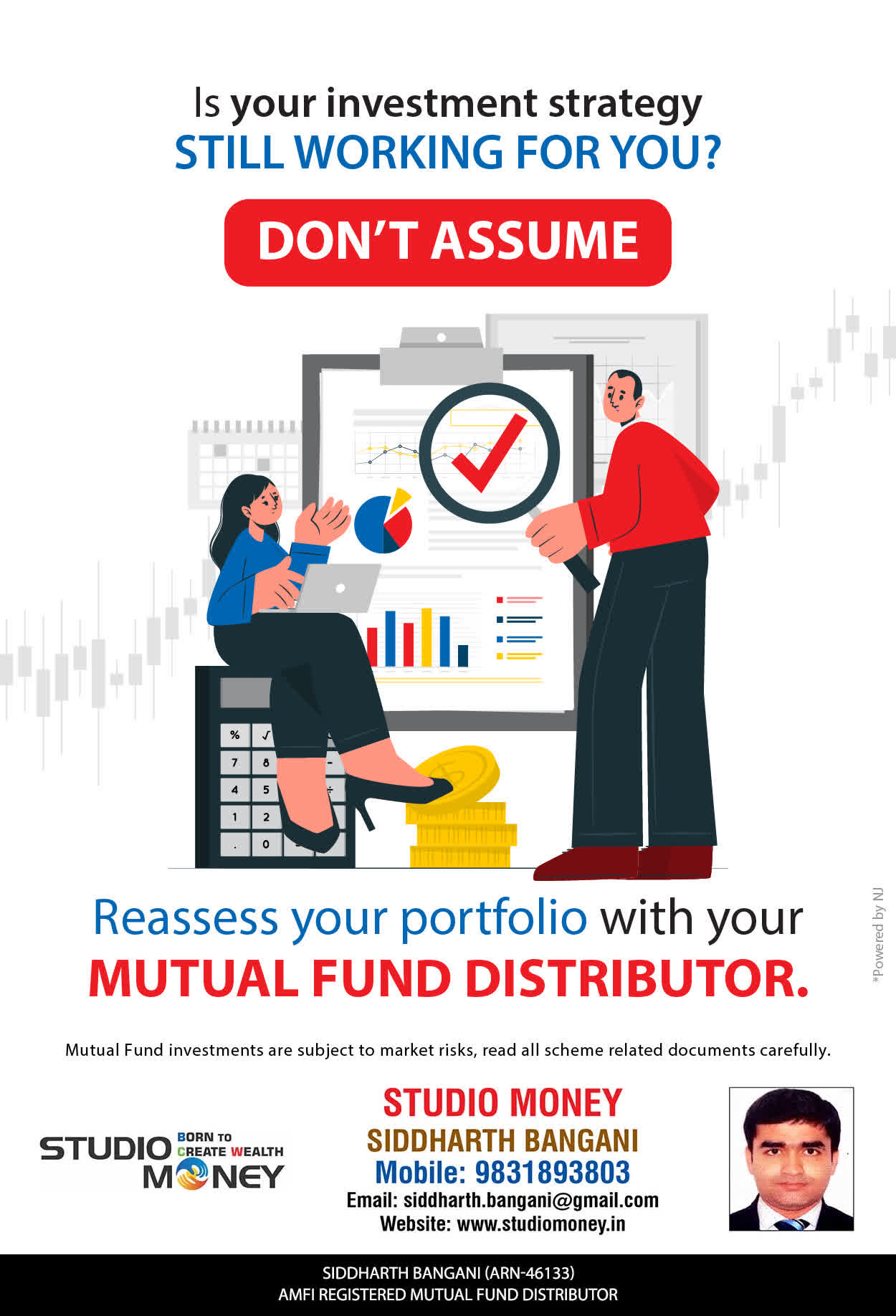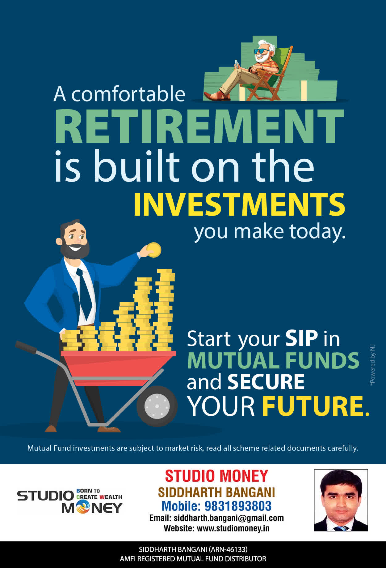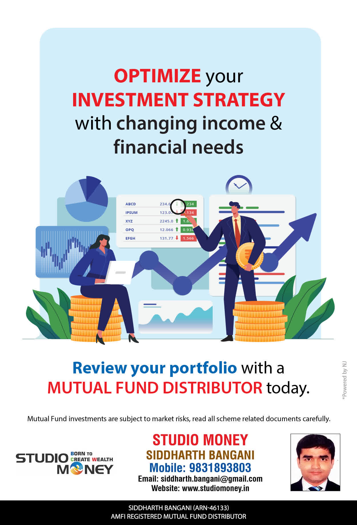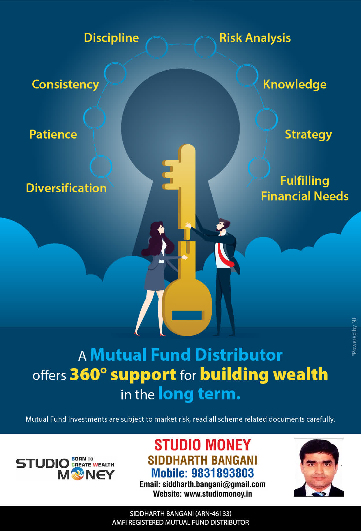 At STUDIO MONEY, our mission is to provide our clients with the comprehensive, competent, customised and classy best solutions in wealth creation and wealth management areas. We are driven to provide clients with simple, unbiased and uncluttered professional advice that adds value to their quality of life and results in actionable solutions.