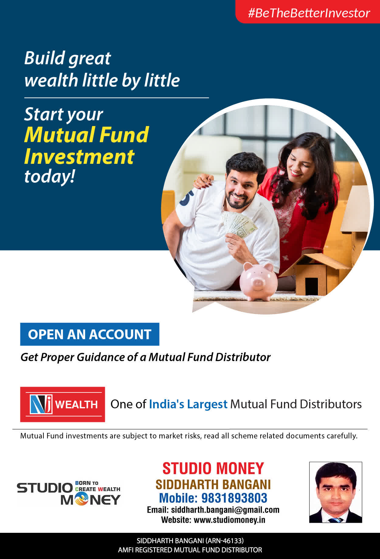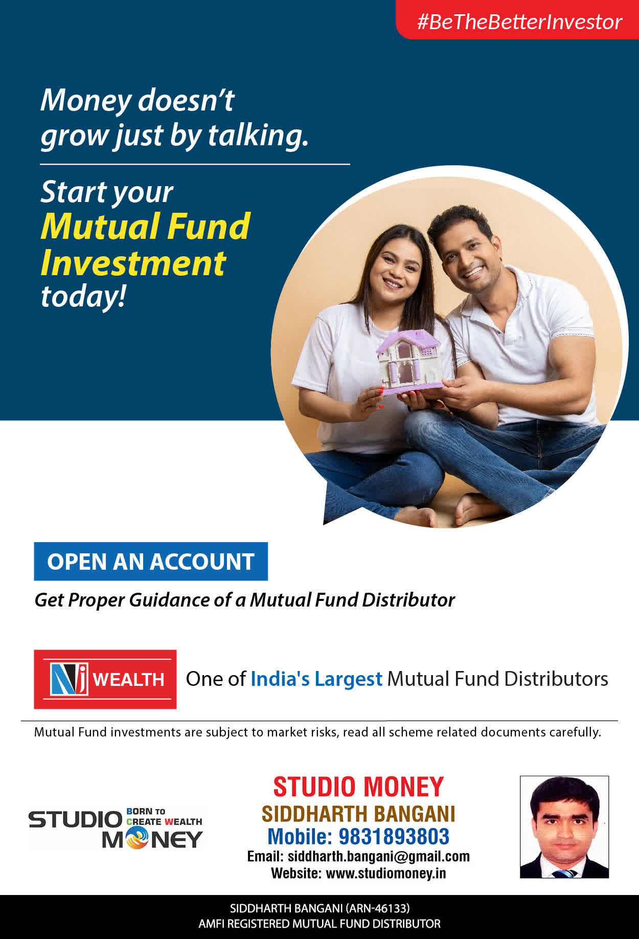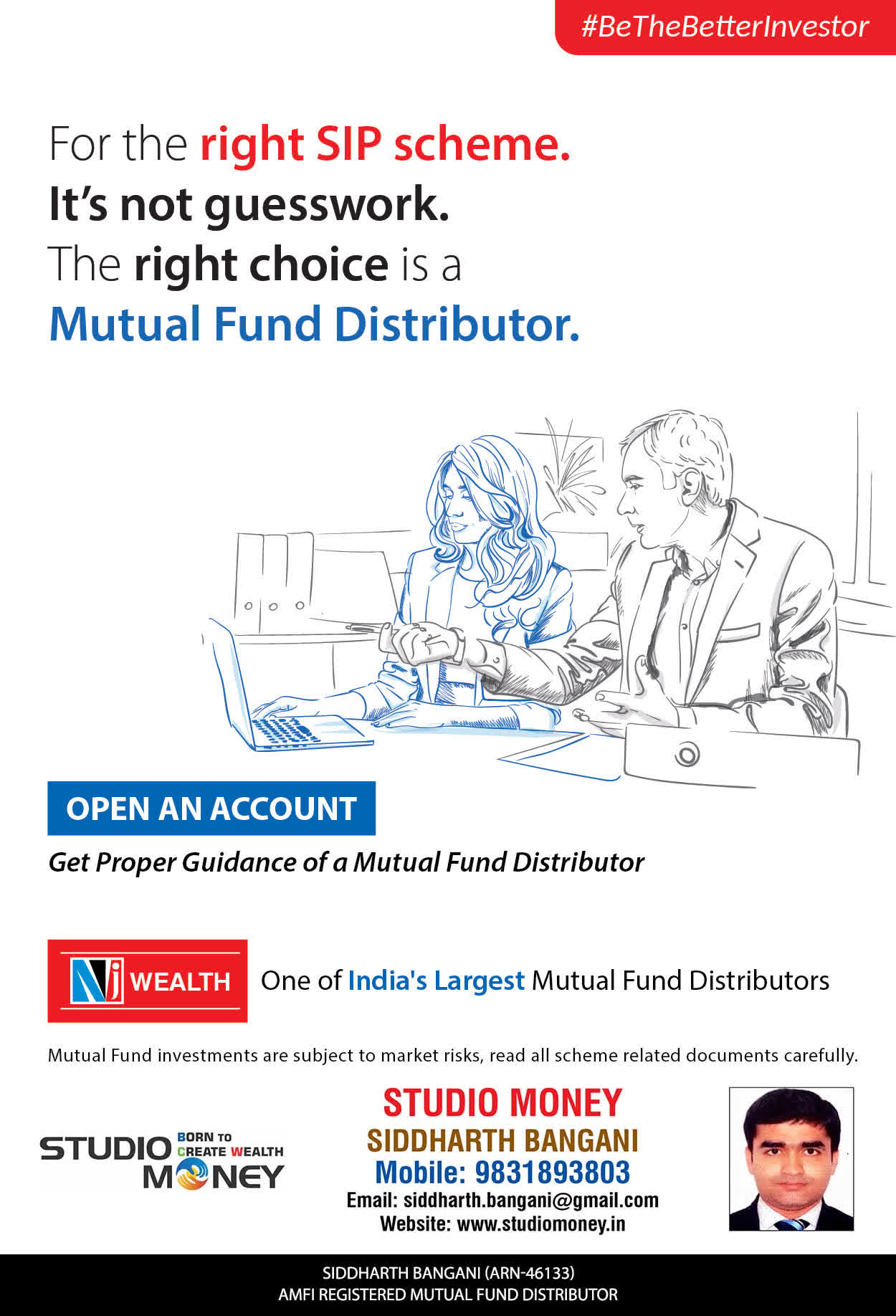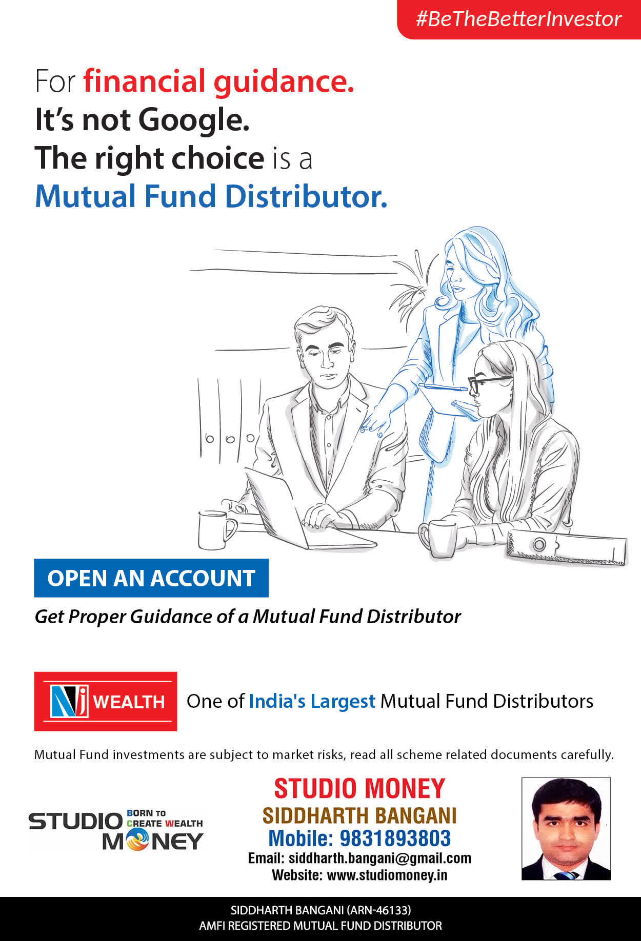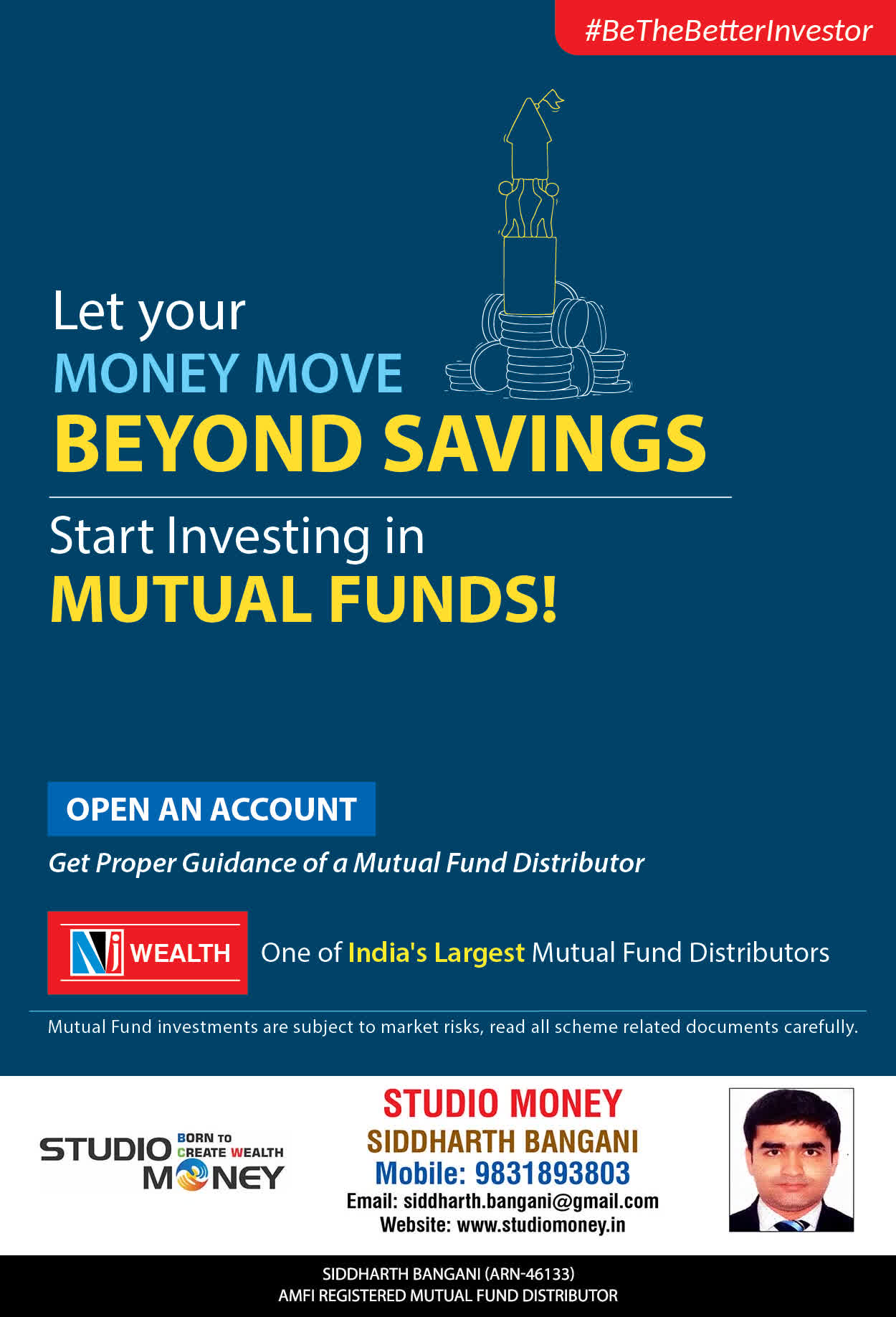 At STUDIO MONEY, our mission is to provide our clients with the comprehensive, competent, customised and classy best solutions in wealth creation and wealth management areas. We are driven to provide clients with simple, unbiased and uncluttered professional advice that adds value to their quality of life and results in actionable solutions.