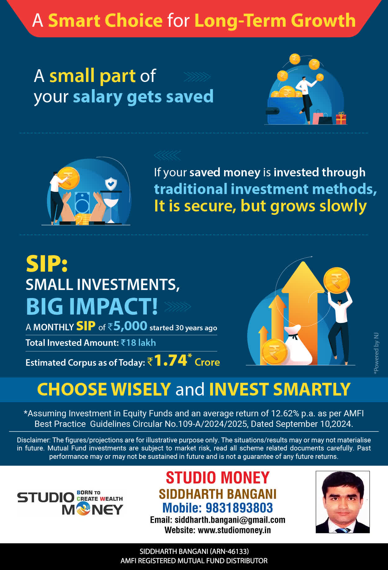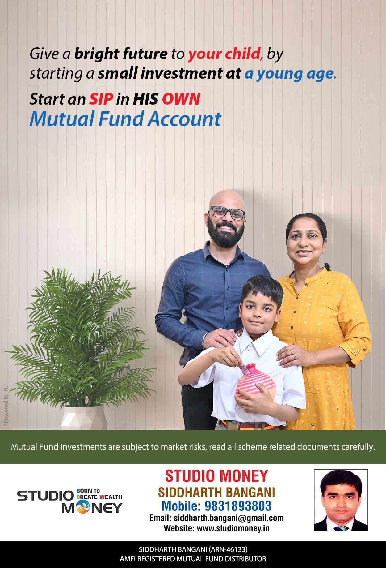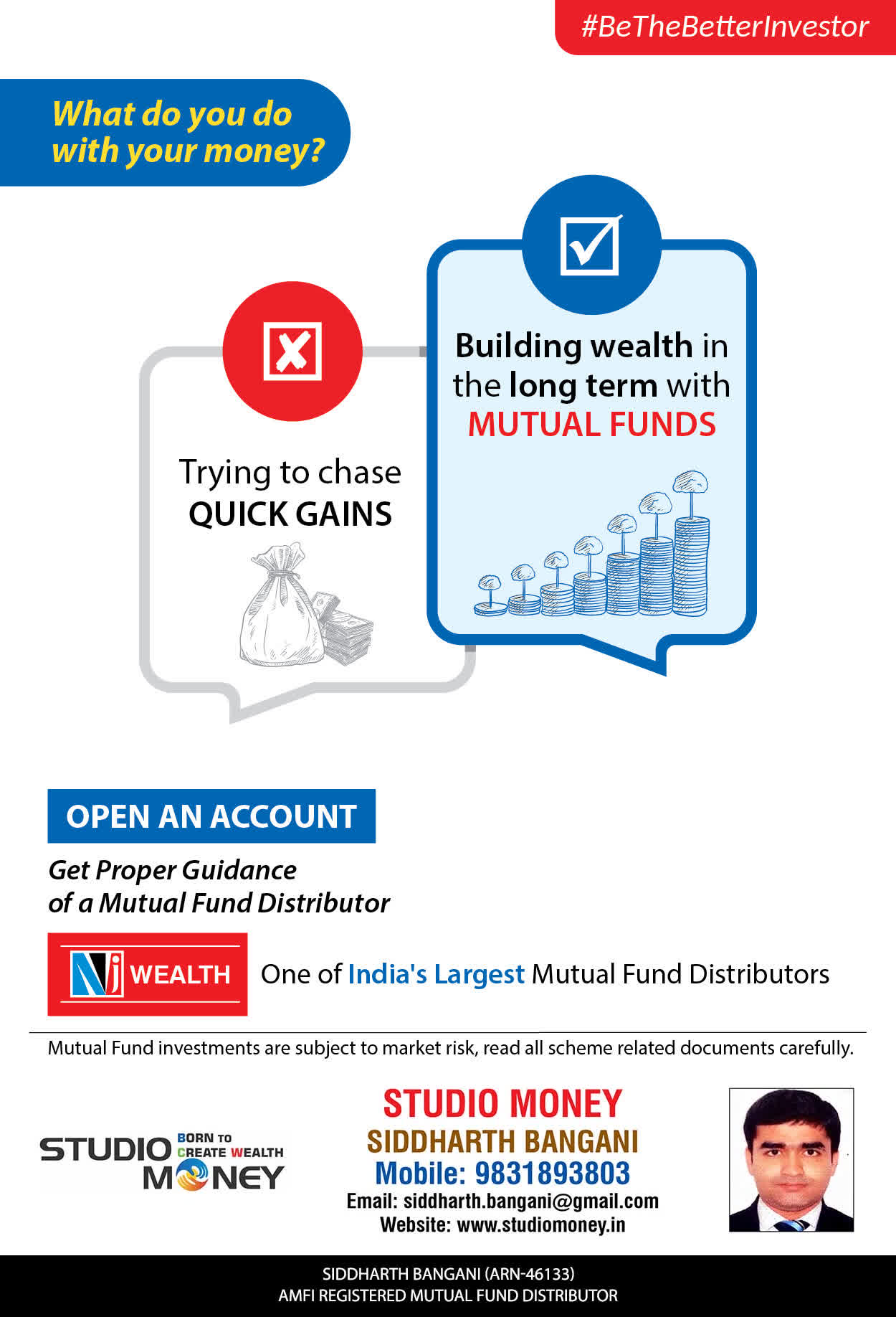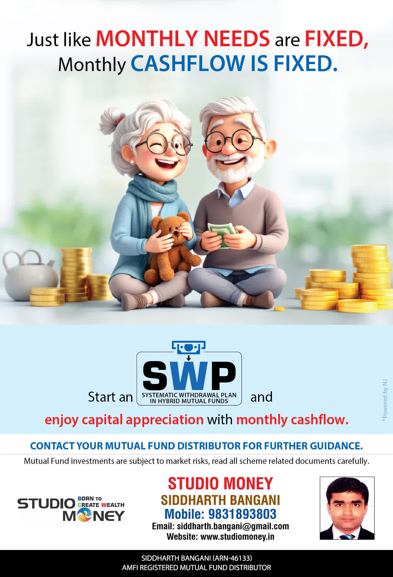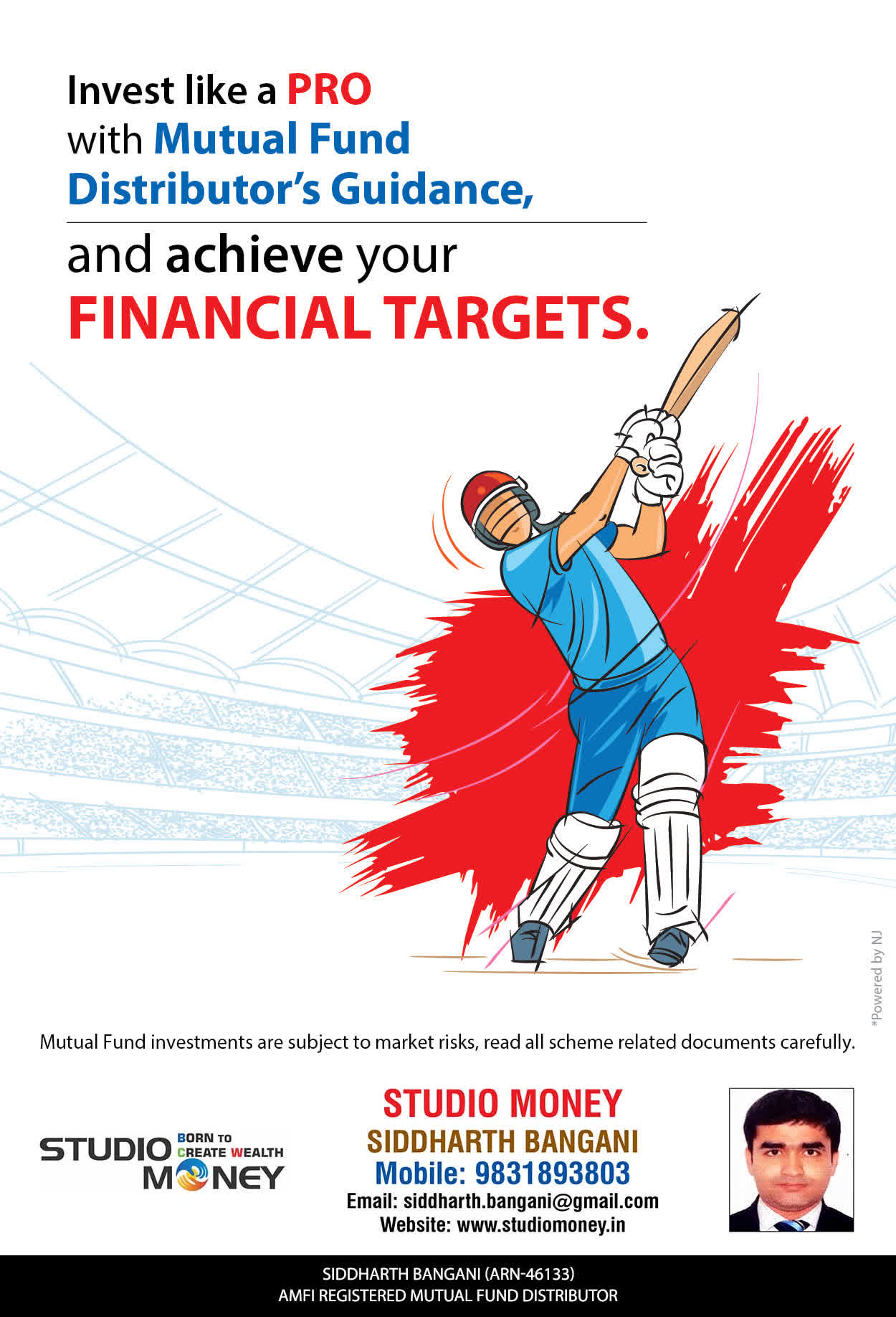 At STUDIO MONEY, our mission is to provide our clients with the comprehensive, competent, customised and classy best solutions in wealth creation and wealth management areas. We are driven to provide clients with simple, unbiased and uncluttered professional advice that adds value to their quality of life and results in actionable solutions.