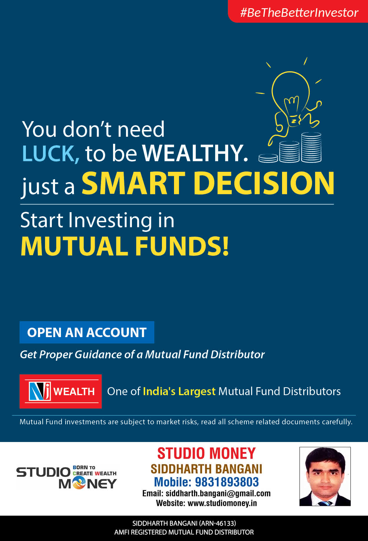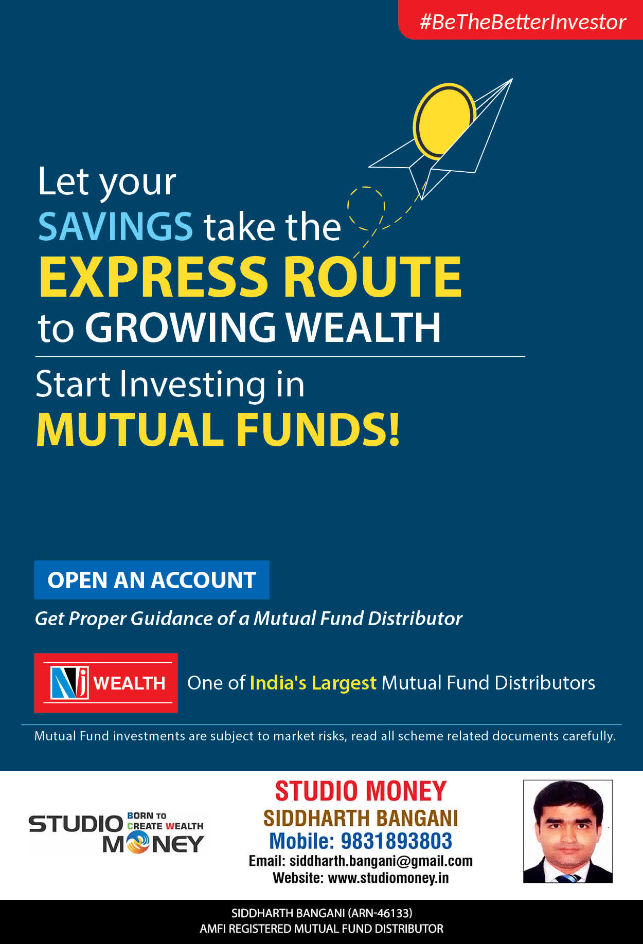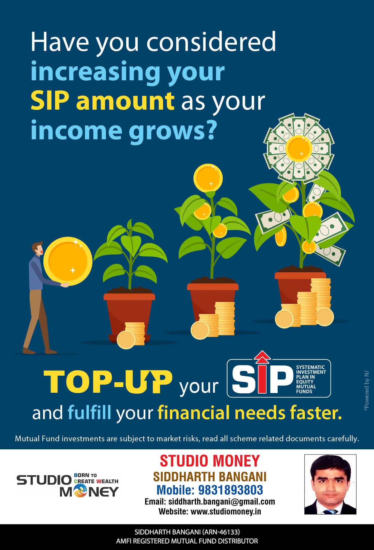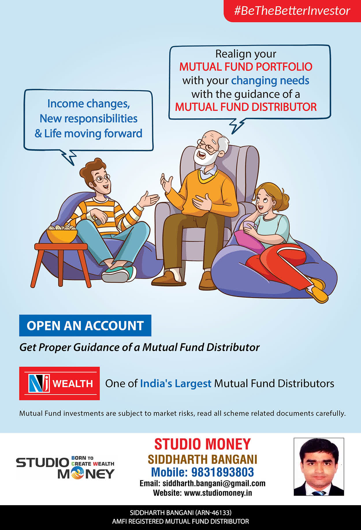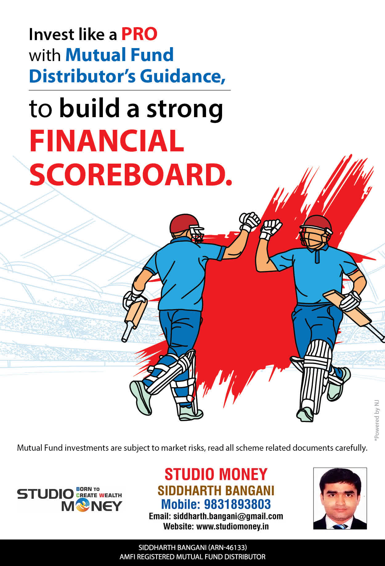 At STUDIO MONEY, our mission is to provide our clients with the comprehensive, competent, customised and classy best solutions in wealth creation and wealth management areas. We are driven to provide clients with simple, unbiased and uncluttered professional advice that adds value to their quality of life and results in actionable solutions.