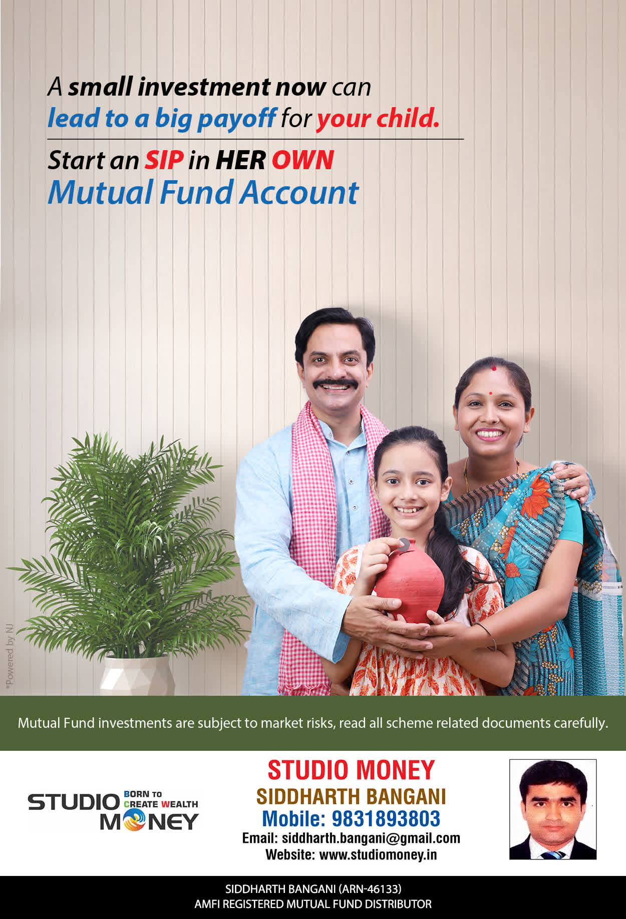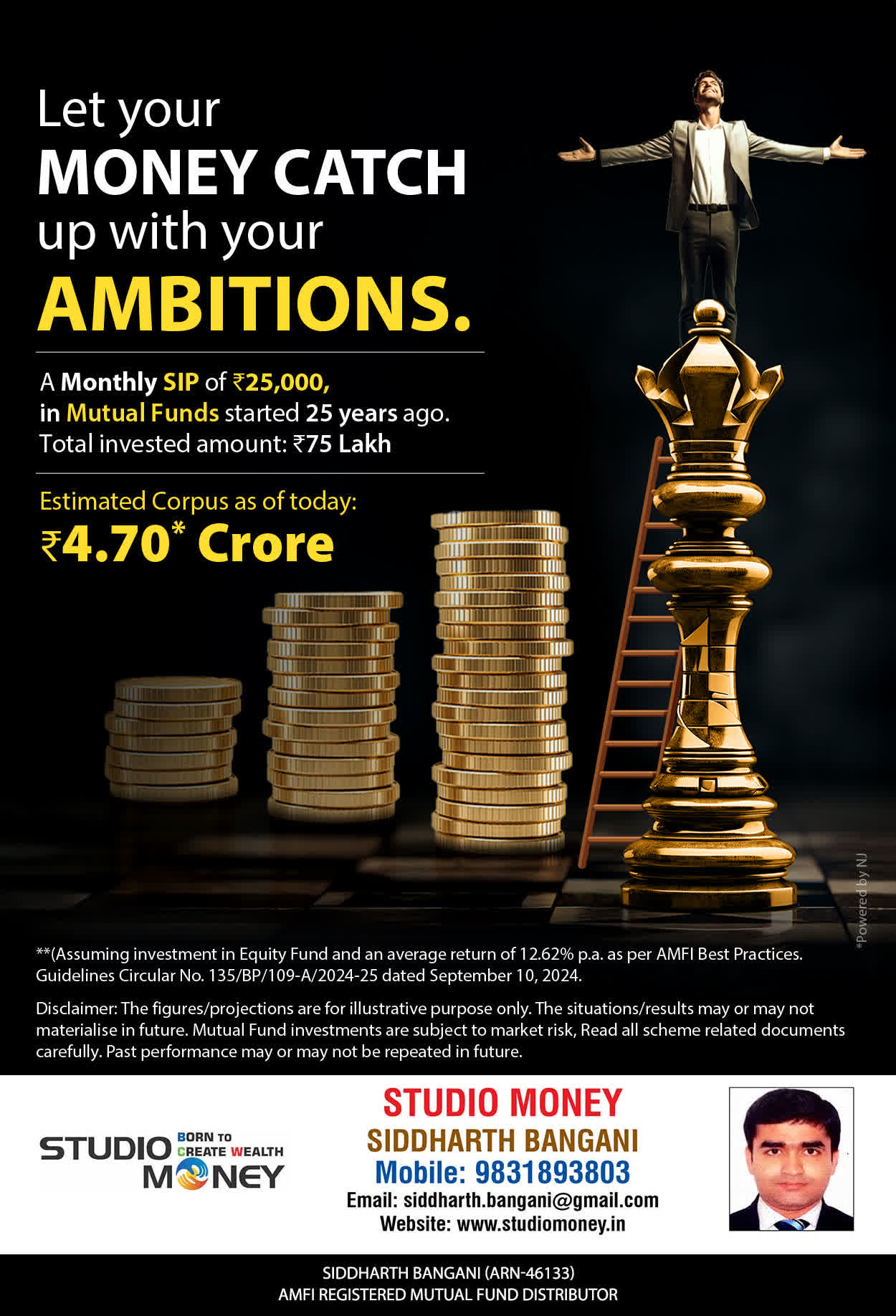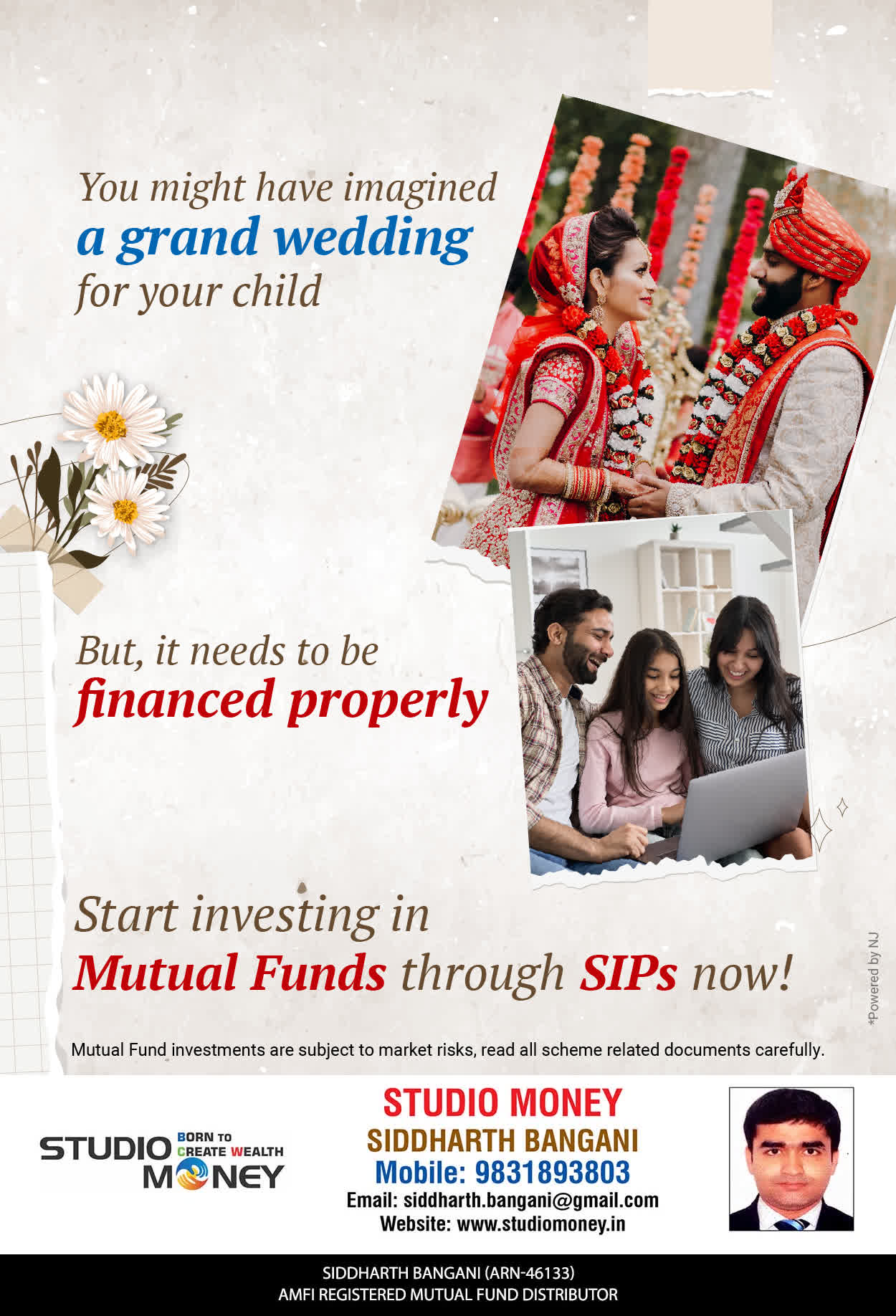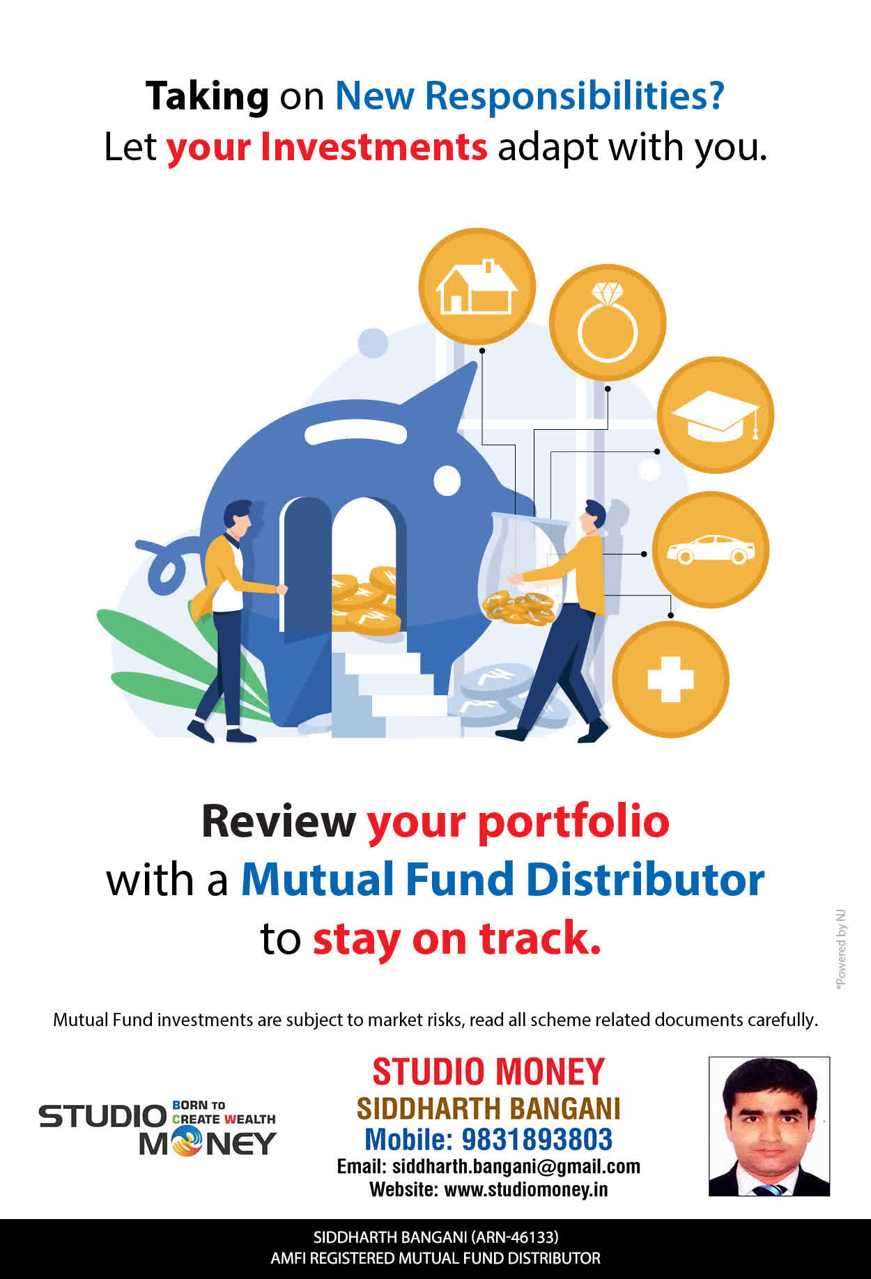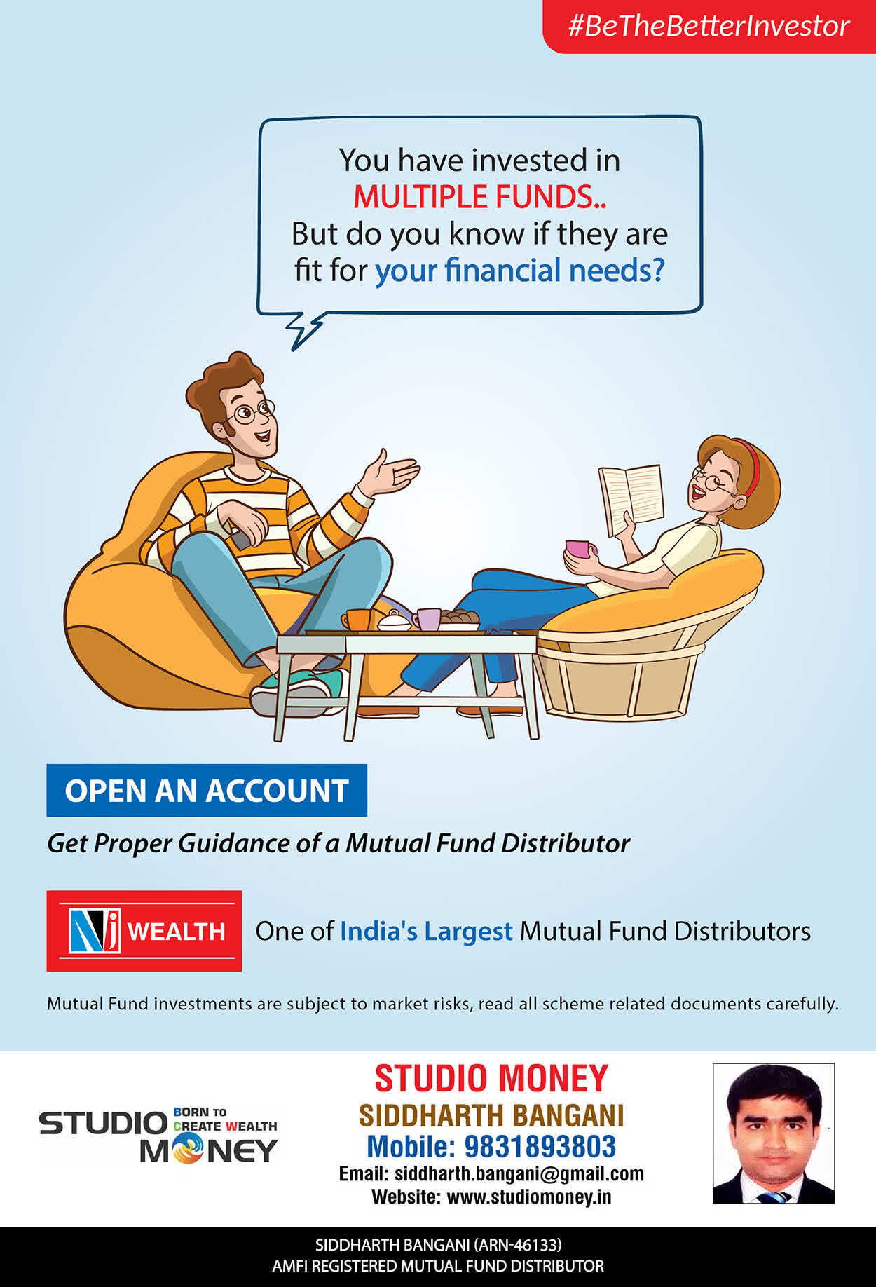 At STUDIO MONEY, our mission is to provide our clients with the comprehensive, competent, customised and classy best solutions in wealth creation and wealth management areas. We are driven to provide clients with simple, unbiased and uncluttered professional advice that adds value to their quality of life and results in actionable solutions.