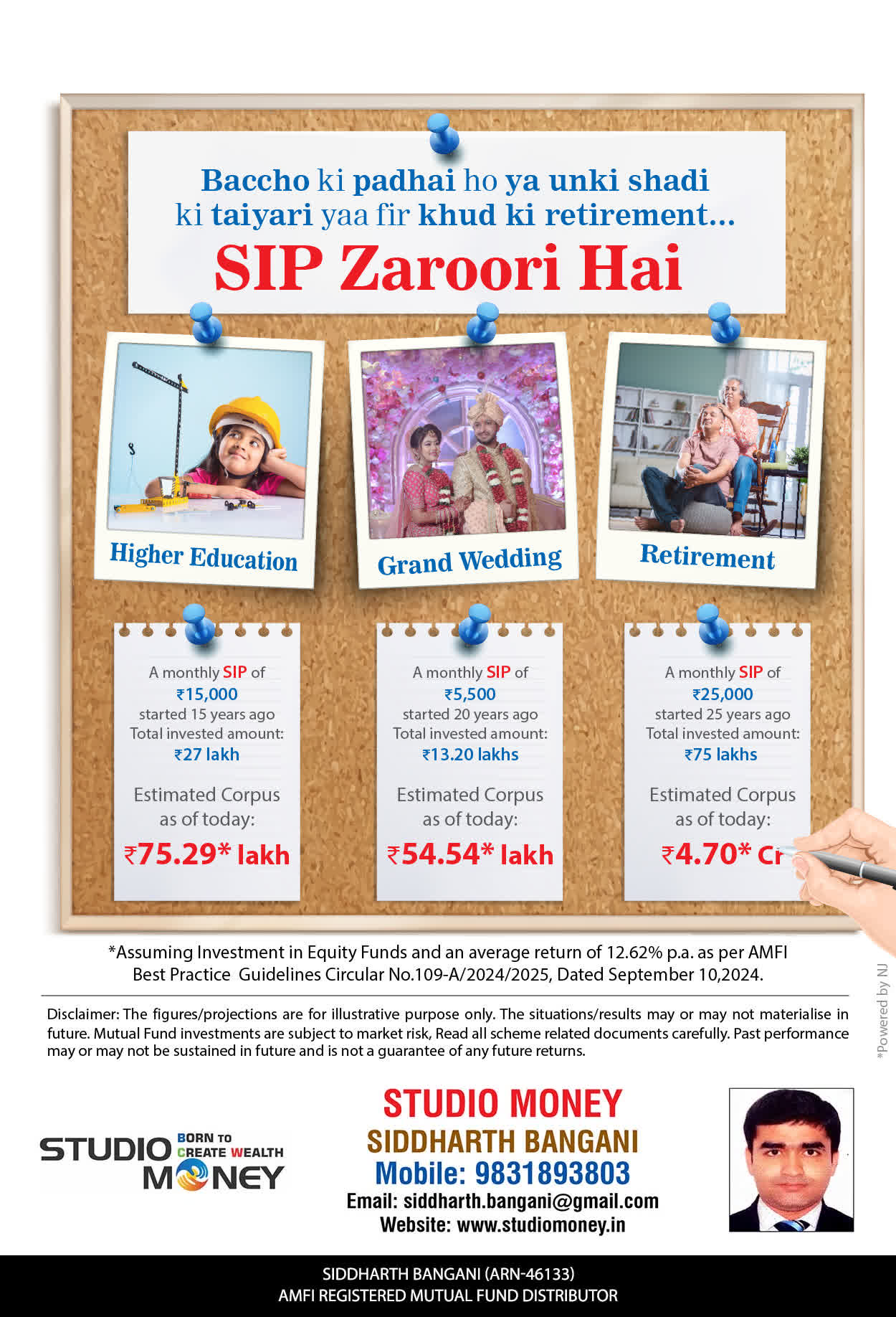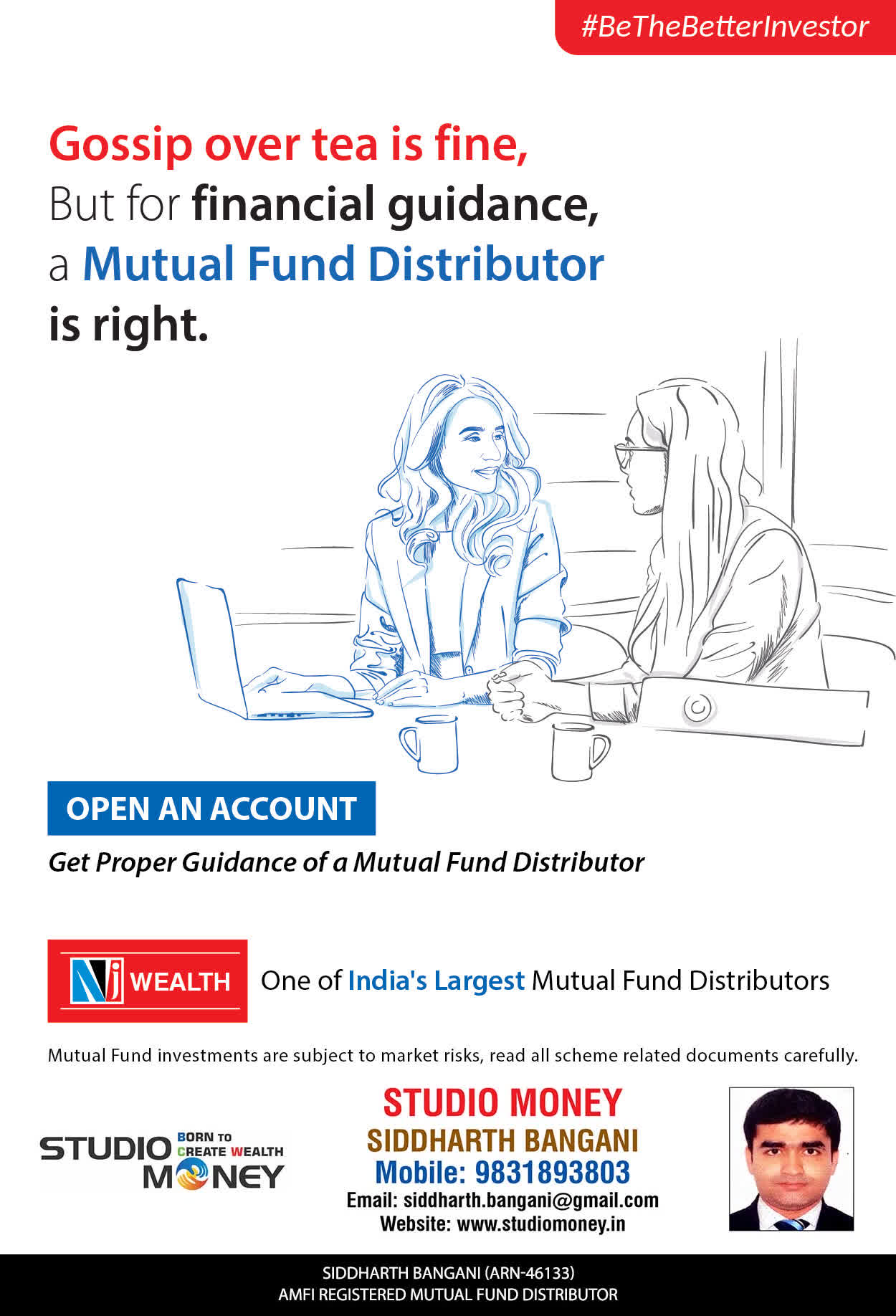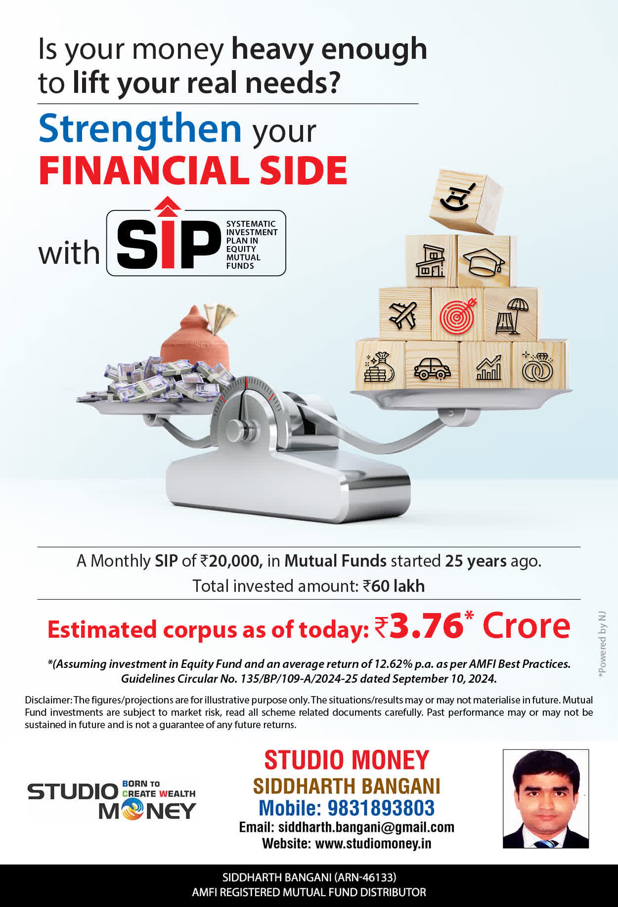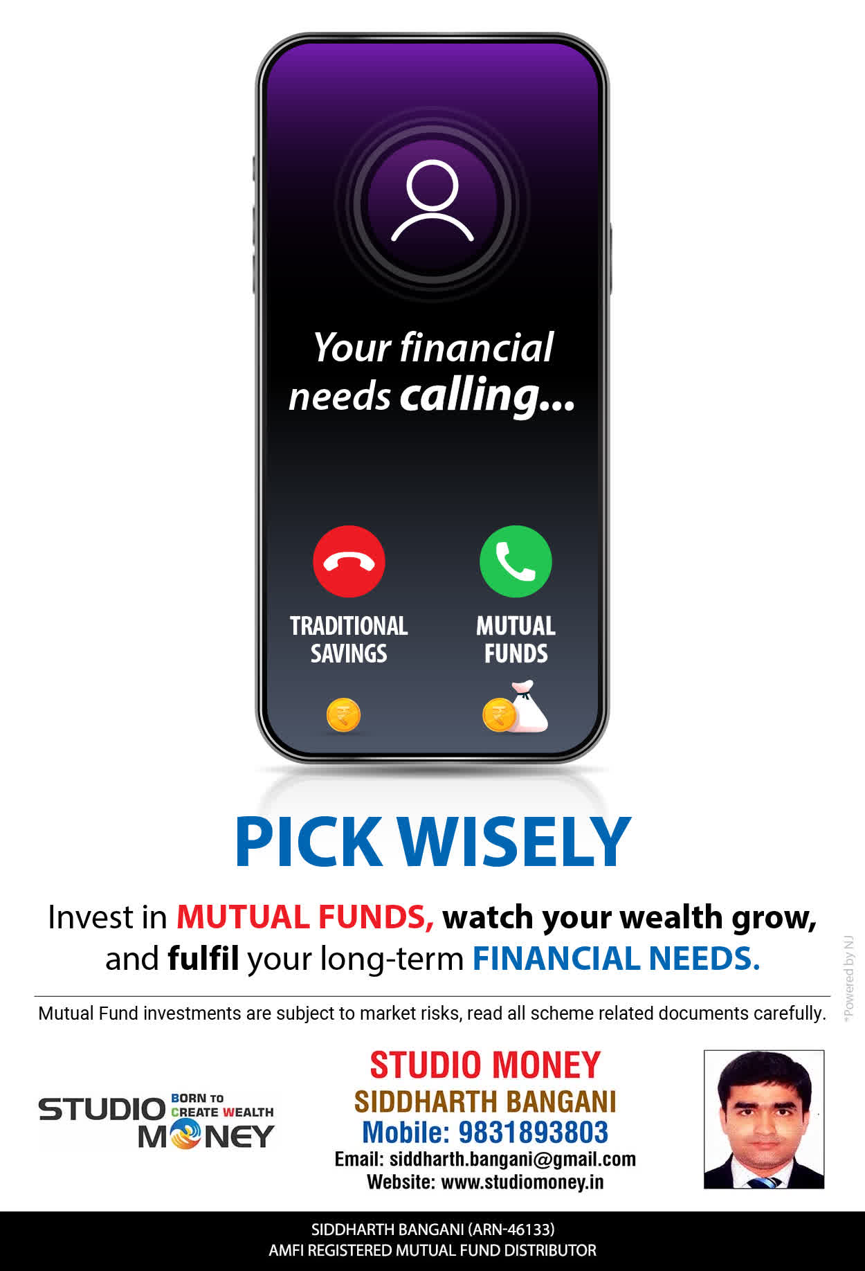 At STUDIO MONEY, our mission is to provide our clients with the comprehensive, competent, customised and classy best solutions in wealth creation and wealth management areas. We are driven to provide clients with simple, unbiased and uncluttered professional advice that adds value to their quality of life and results in actionable solutions.