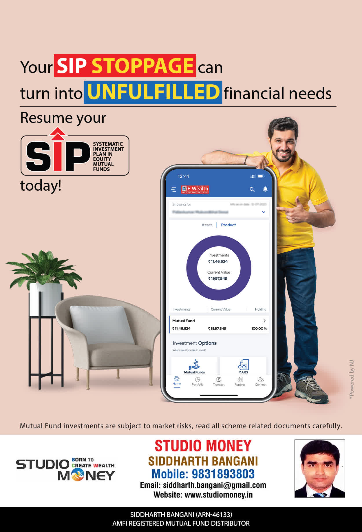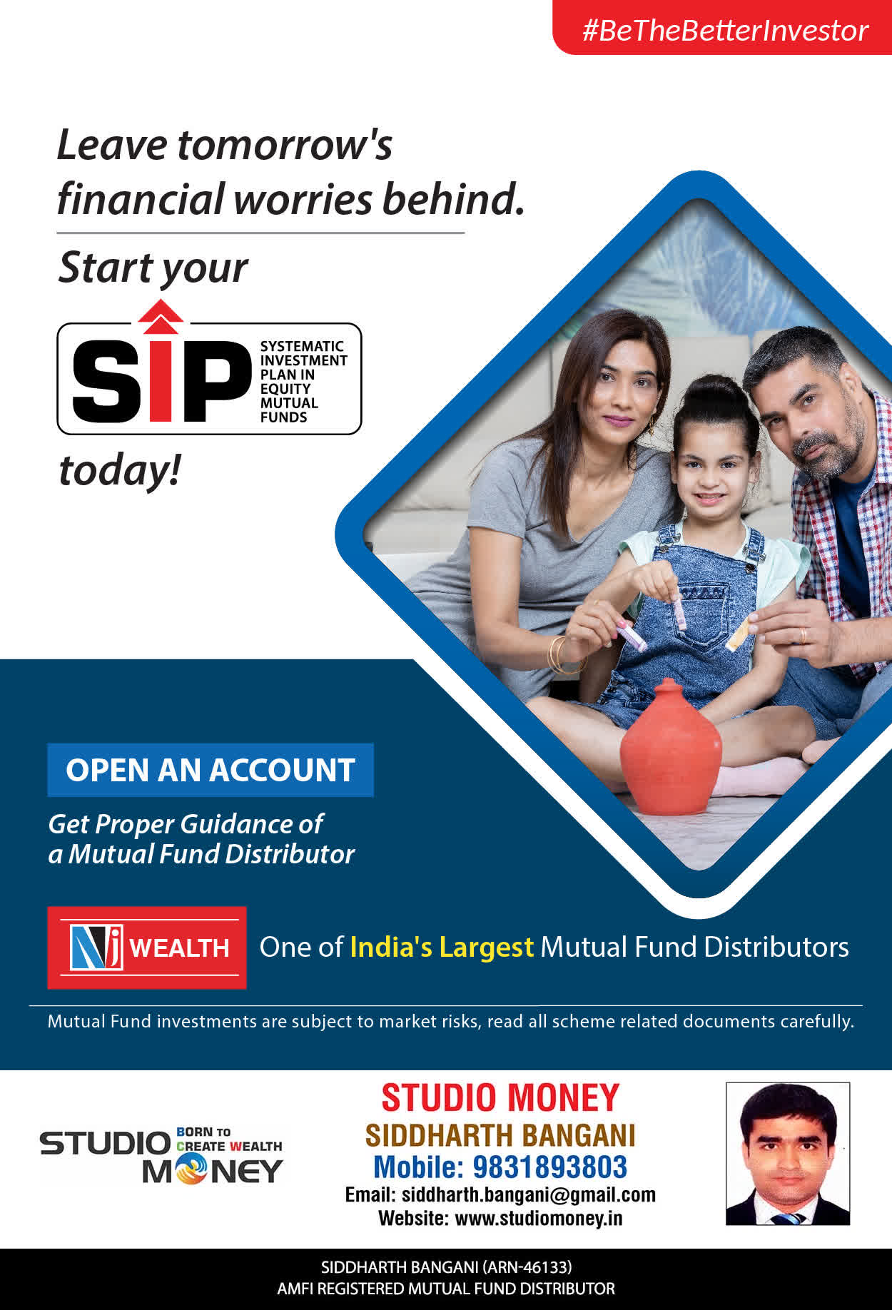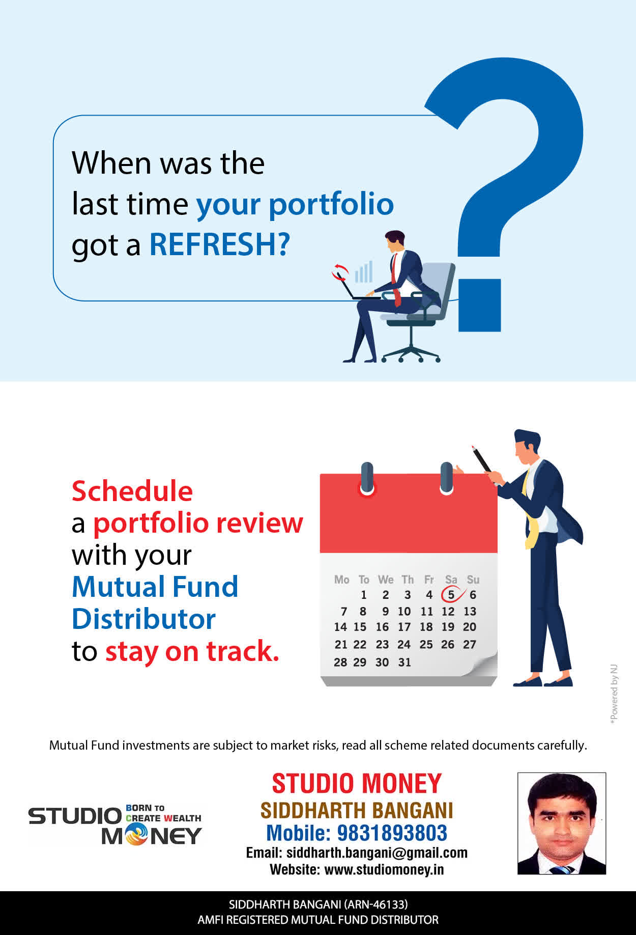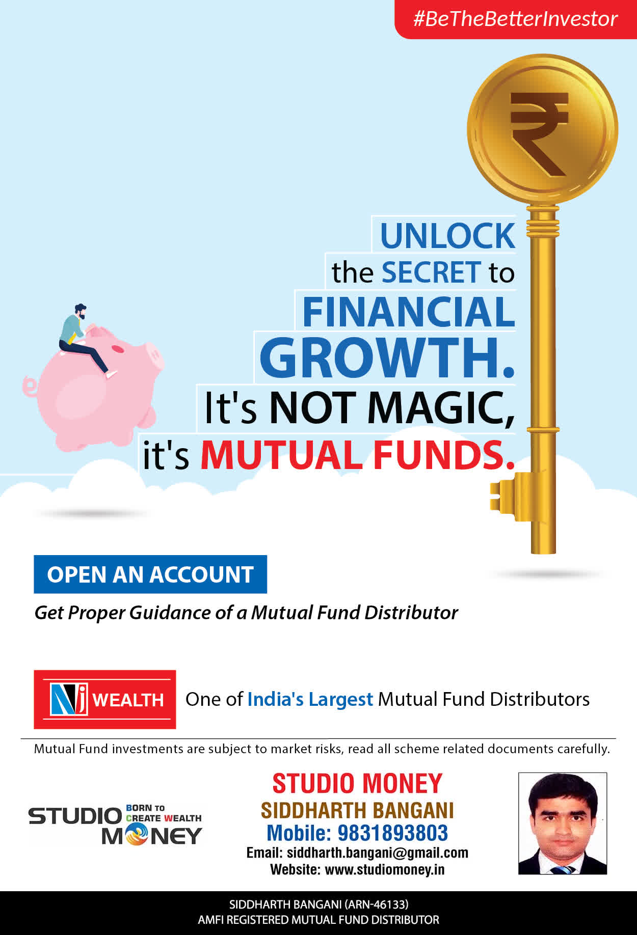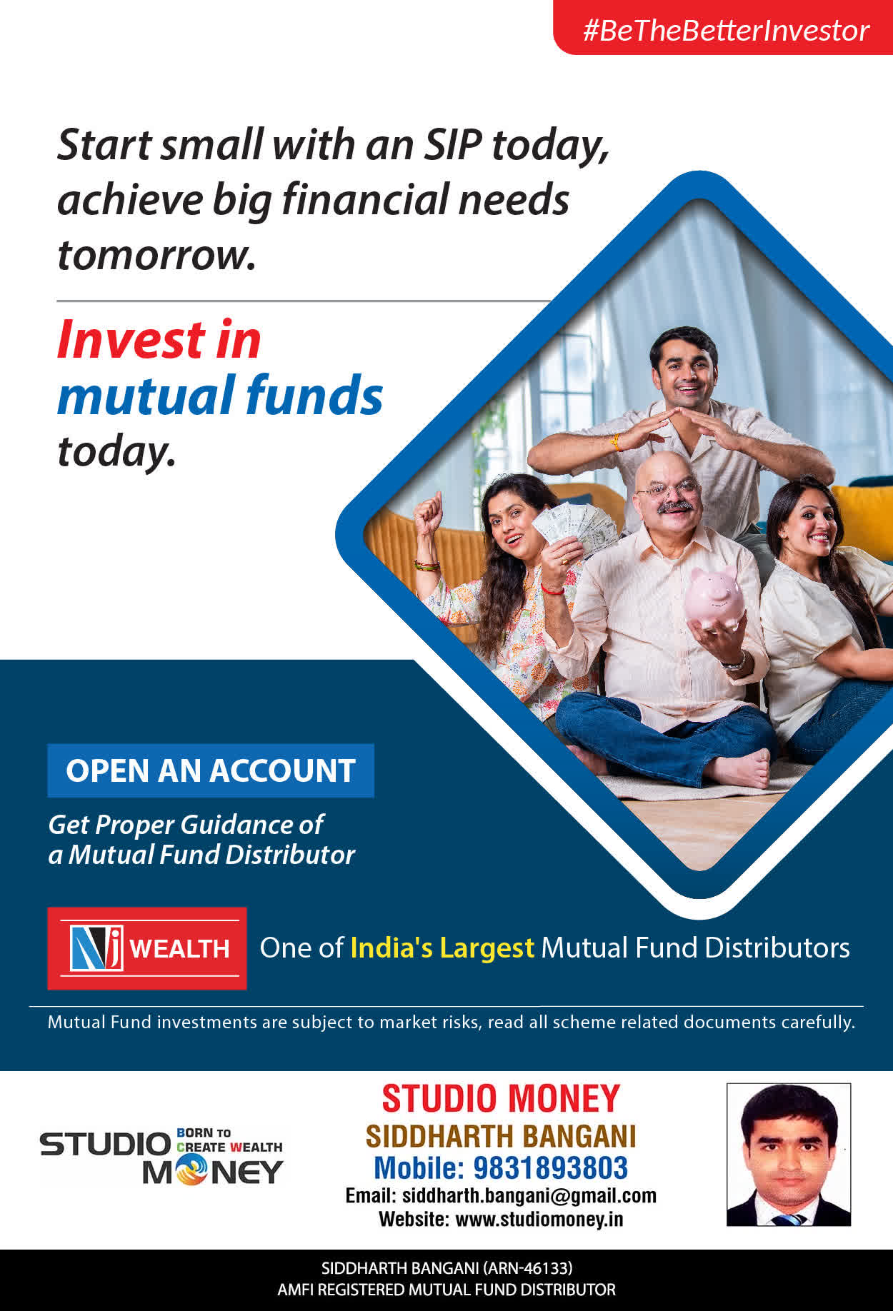 At STUDIO MONEY, our mission is to provide our clients with the comprehensive, competent, customised and classy best solutions in wealth creation and wealth management areas. We are driven to provide clients with simple, unbiased and uncluttered professional advice that adds value to their quality of life and results in actionable solutions.