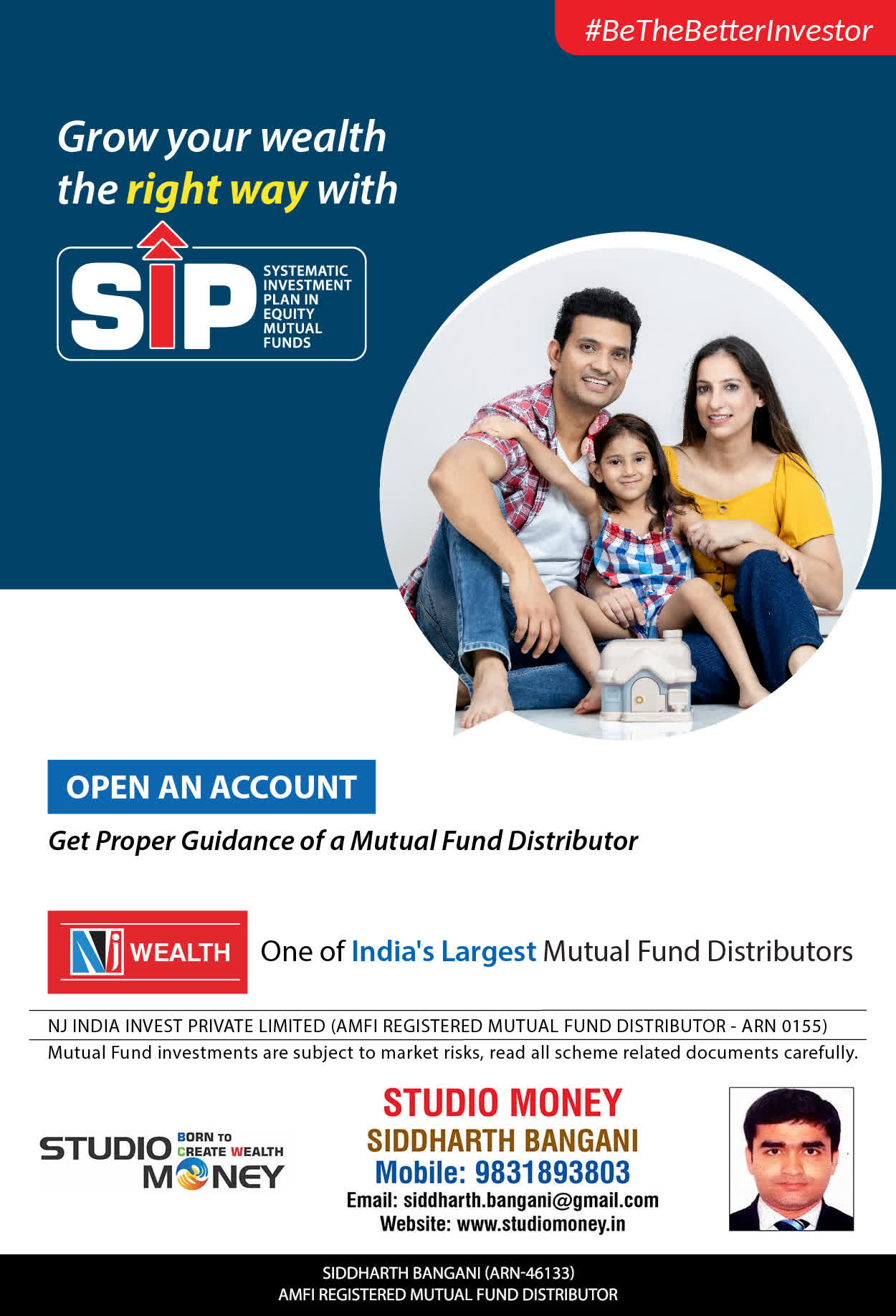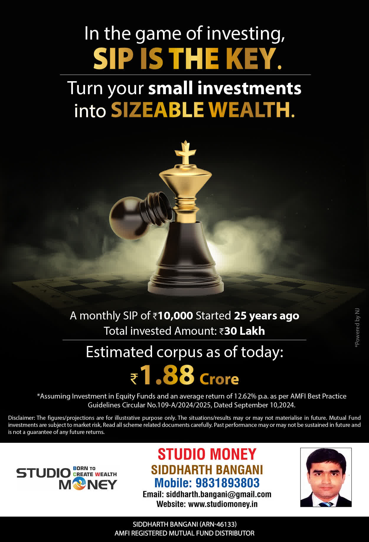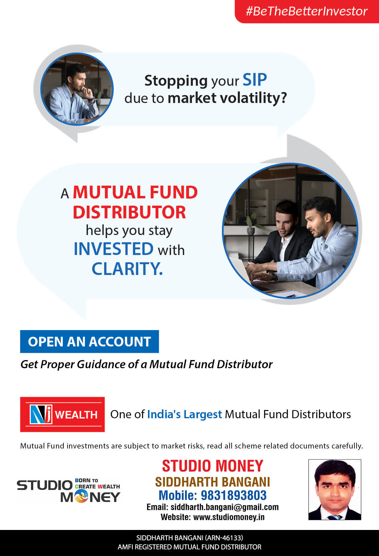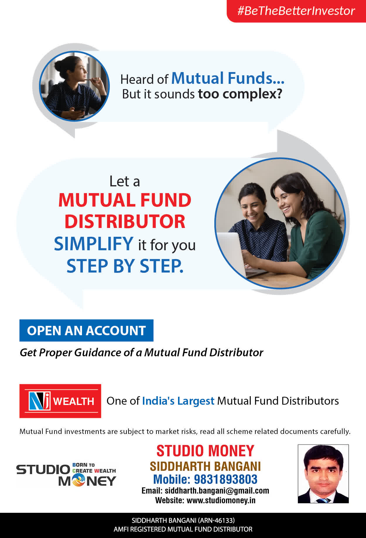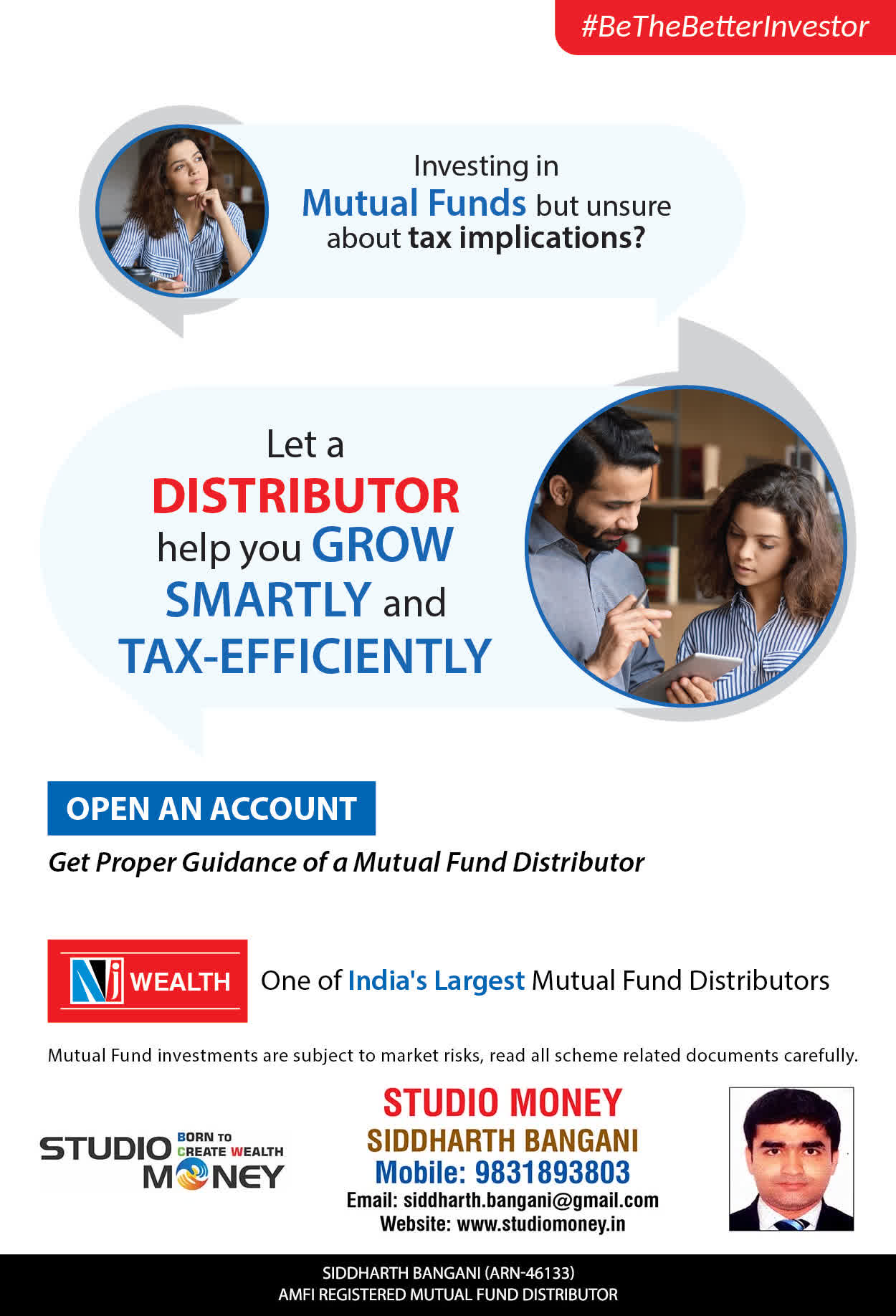 At STUDIO MONEY, our mission is to provide our clients with the comprehensive, competent, customised and classy best solutions in wealth creation and wealth management areas. We are driven to provide clients with simple, unbiased and uncluttered professional advice that adds value to their quality of life and results in actionable solutions.