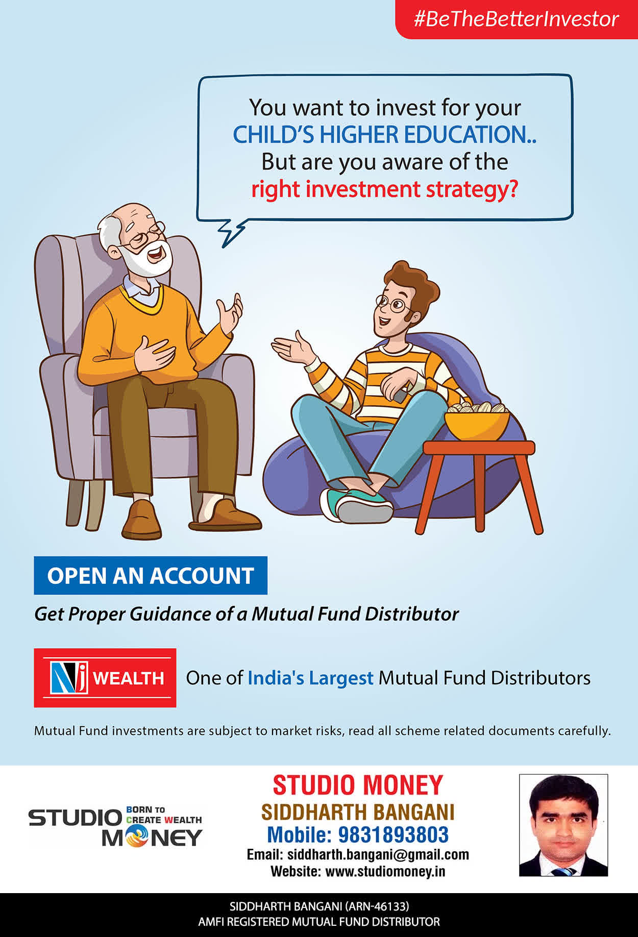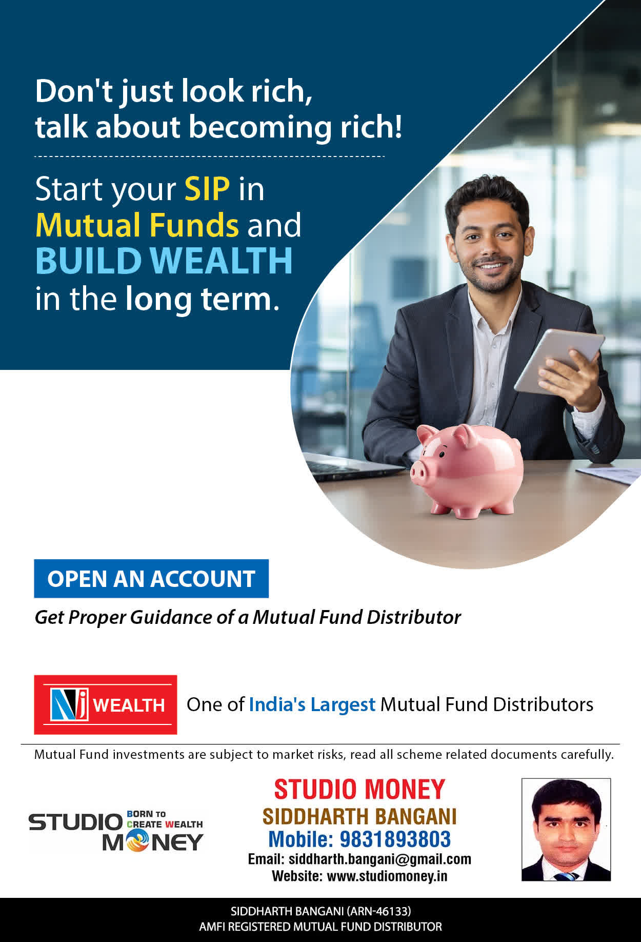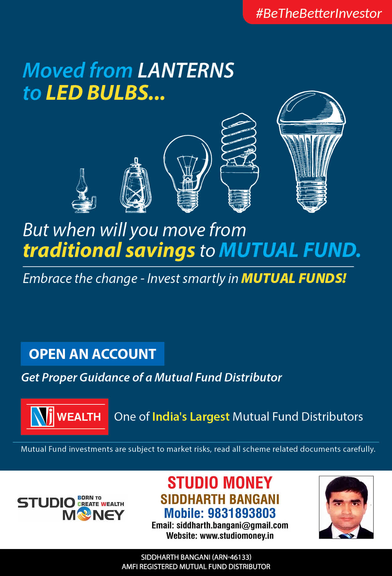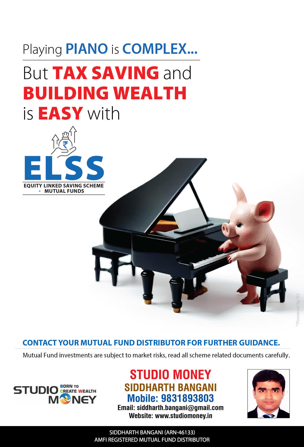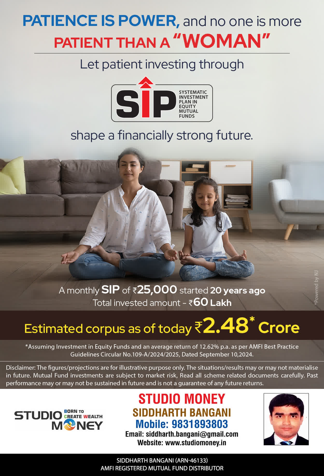 At STUDIO MONEY, our mission is to provide our clients with the comprehensive, competent, customised and classy best solutions in wealth creation and wealth management areas. We are driven to provide clients with simple, unbiased and uncluttered professional advice that adds value to their quality of life and results in actionable solutions.