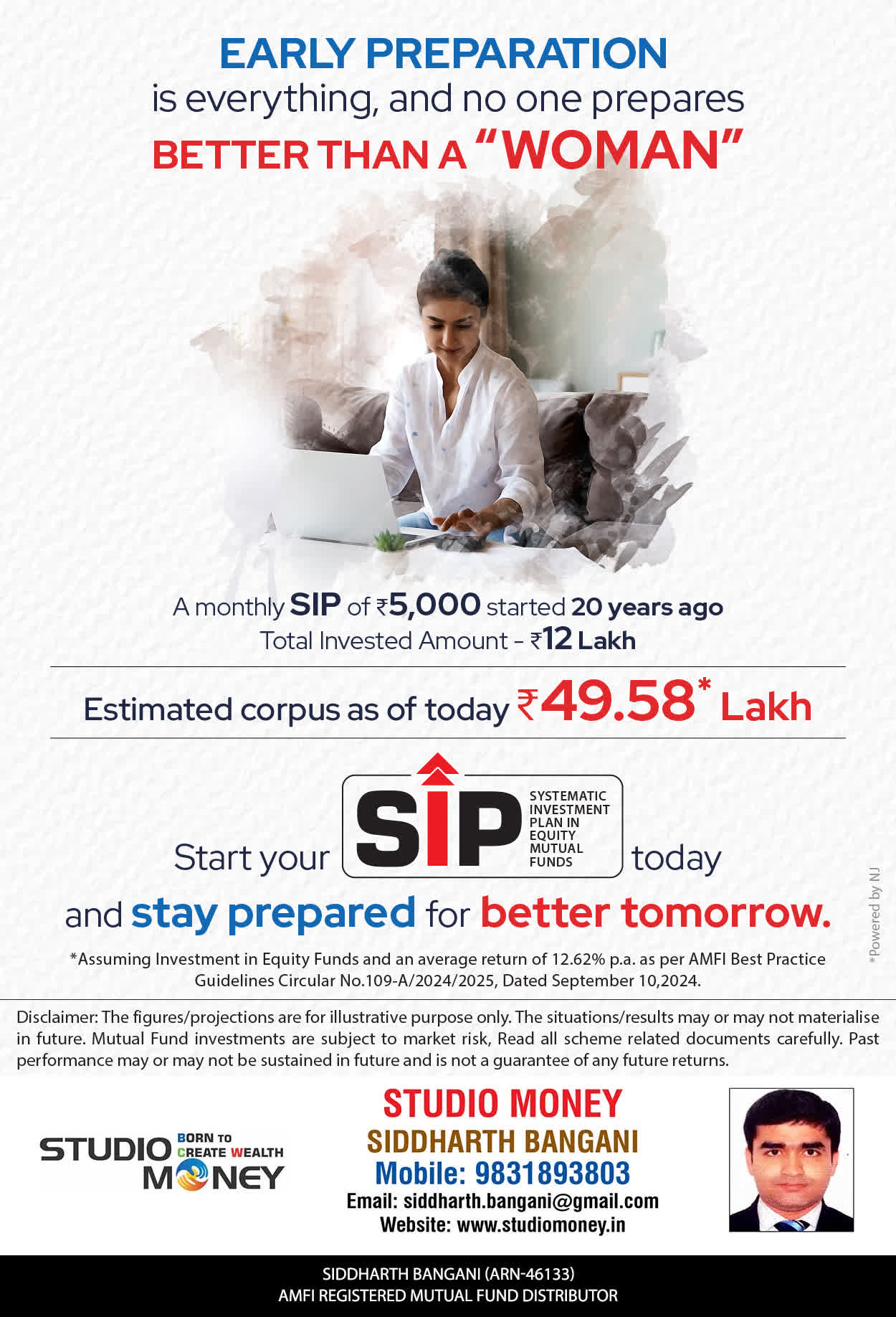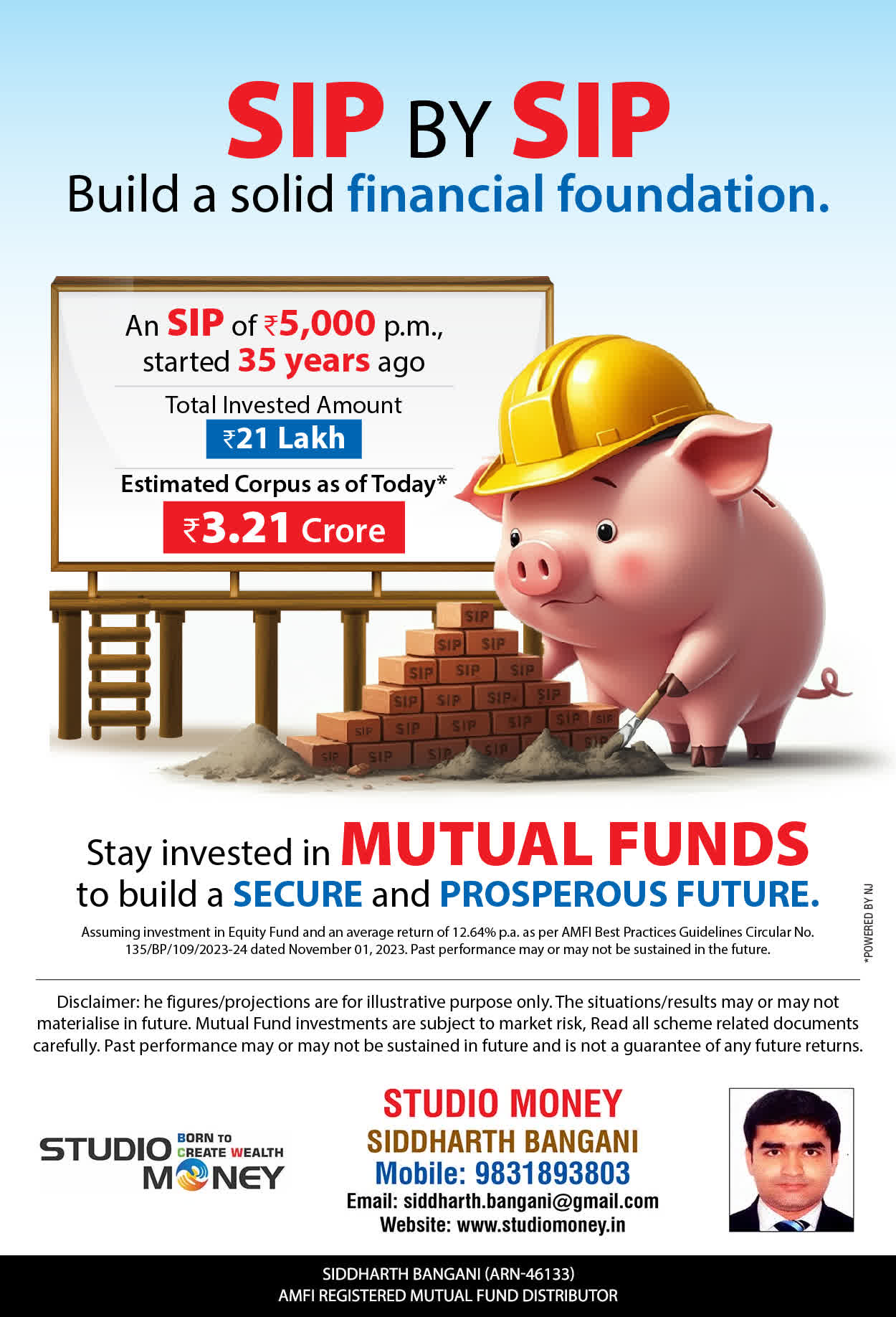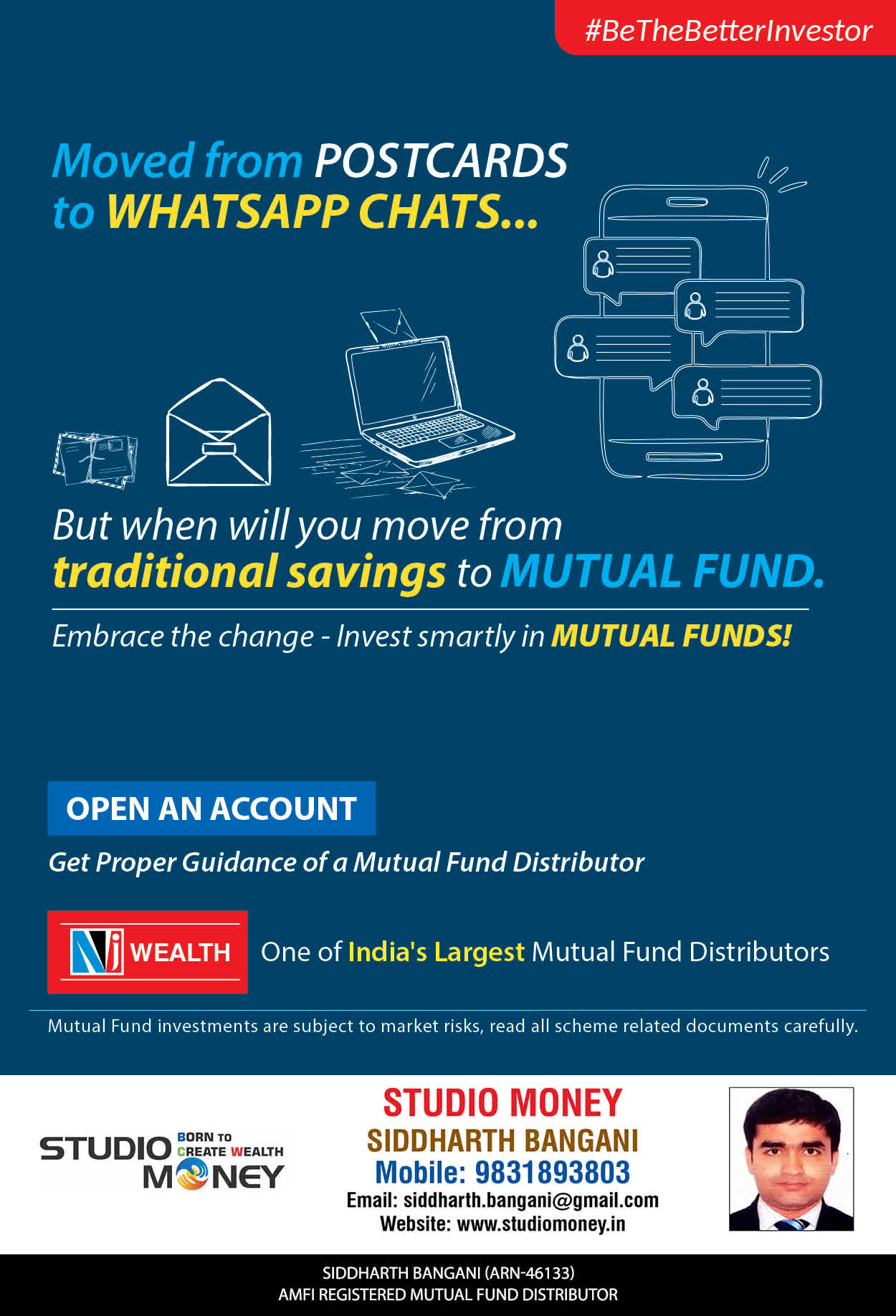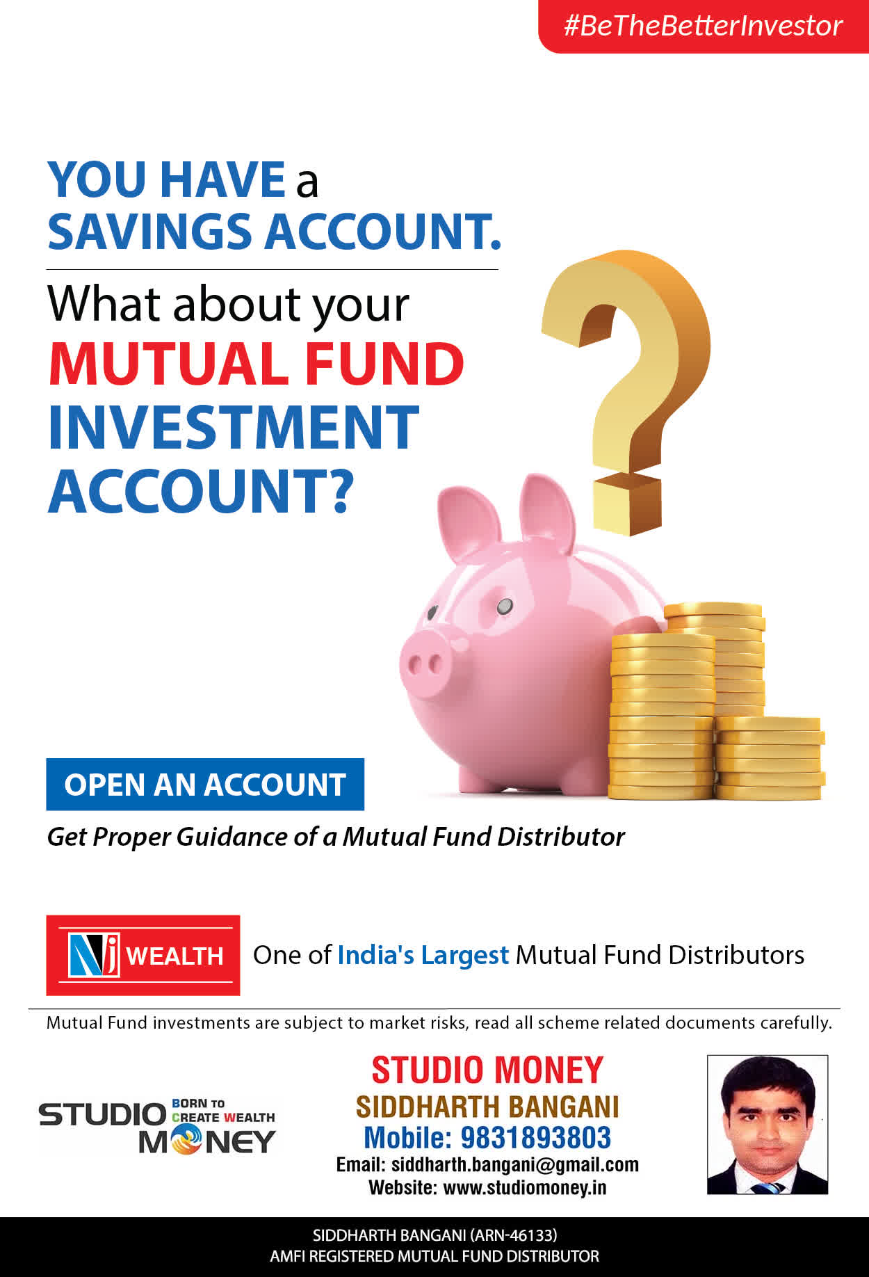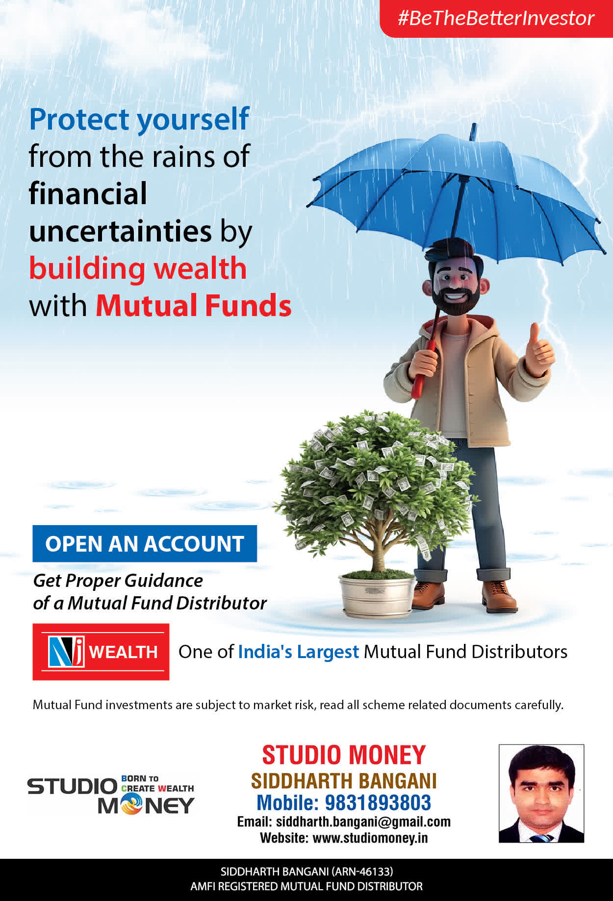 At STUDIO MONEY, our mission is to provide our clients with the comprehensive, competent, customised and classy best solutions in wealth creation and wealth management areas. We are driven to provide clients with simple, unbiased and uncluttered professional advice that adds value to their quality of life and results in actionable solutions.