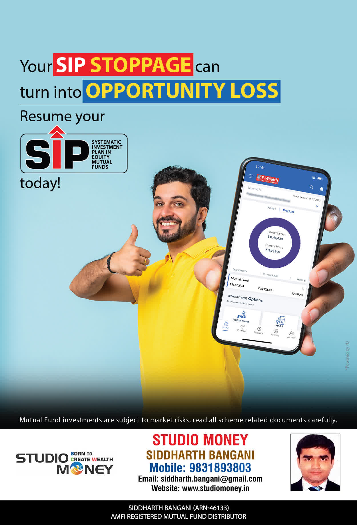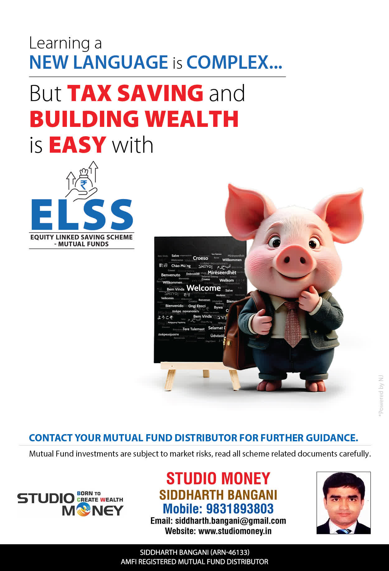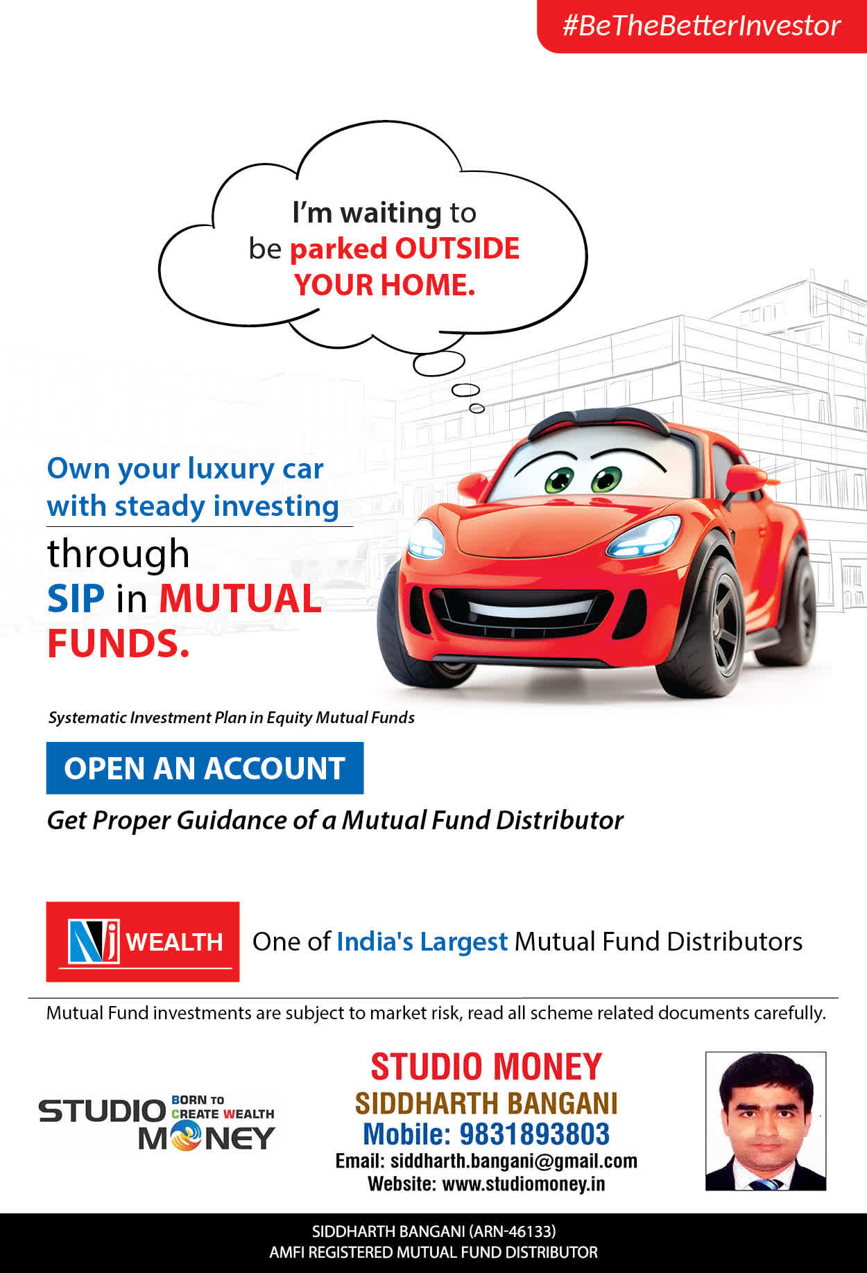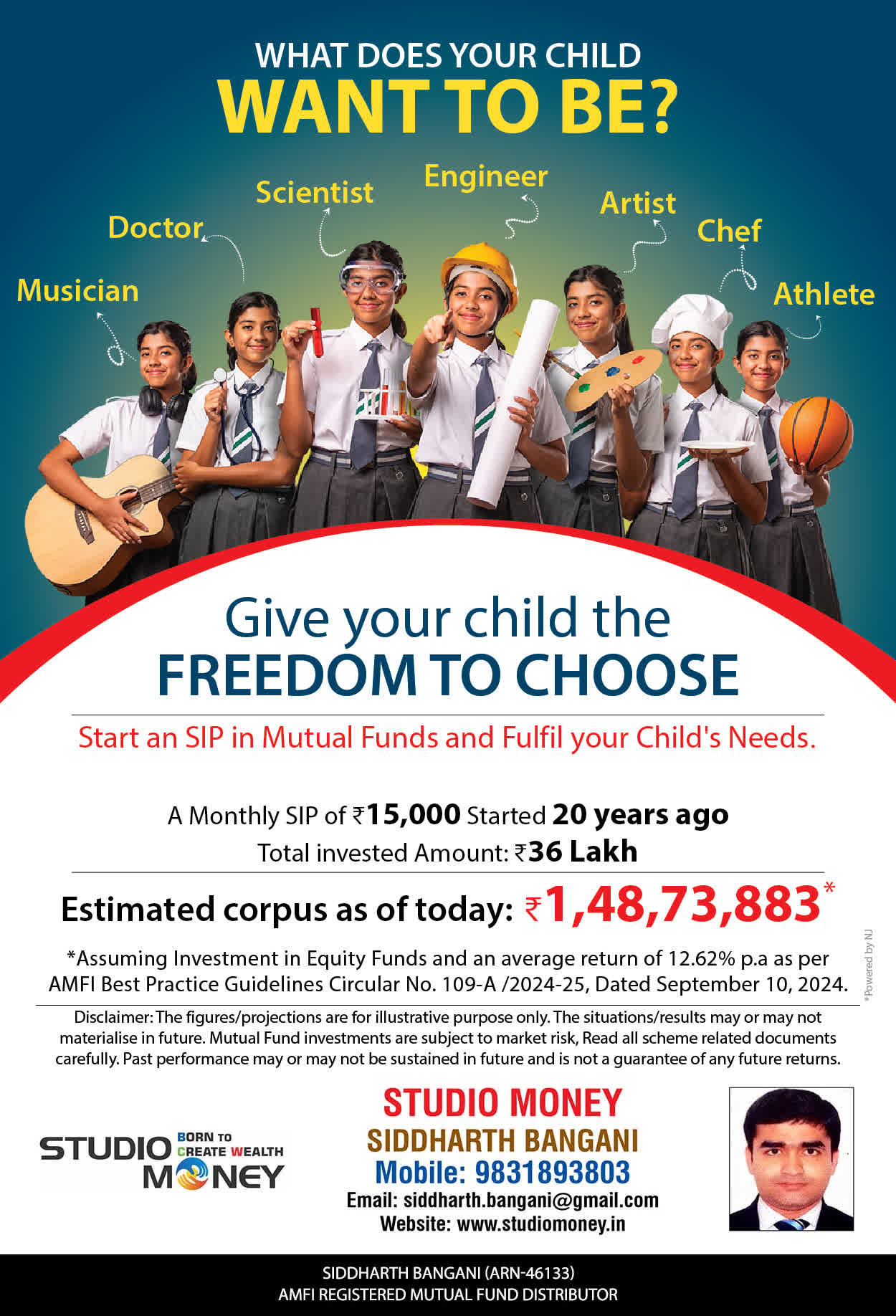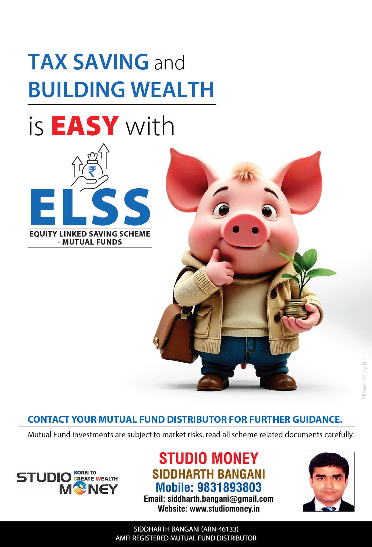 At STUDIO MONEY, our mission is to provide our clients with the comprehensive, competent, customised and classy best solutions in wealth creation and wealth management areas. We are driven to provide clients with simple, unbiased and uncluttered professional advice that adds value to their quality of life and results in actionable solutions.