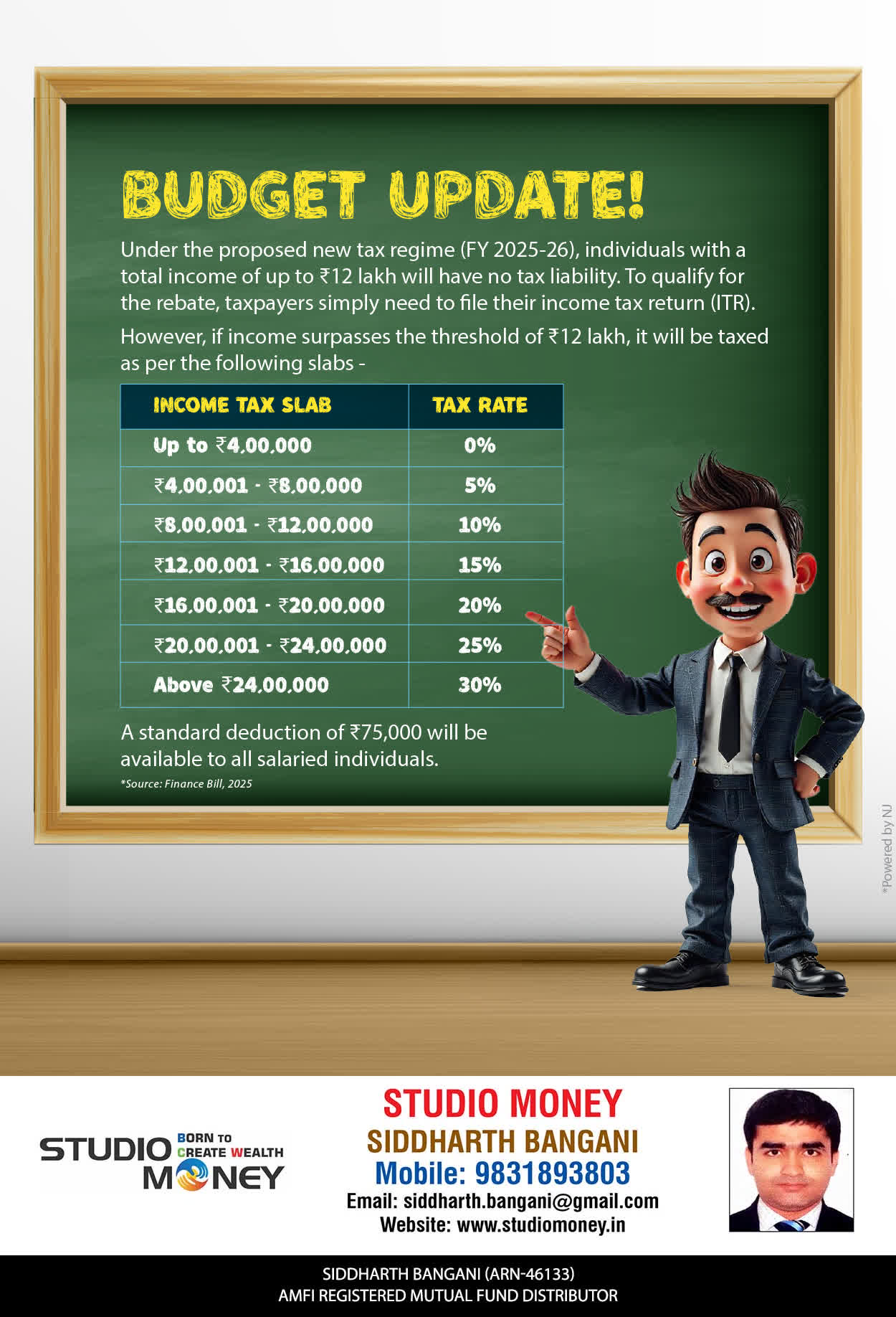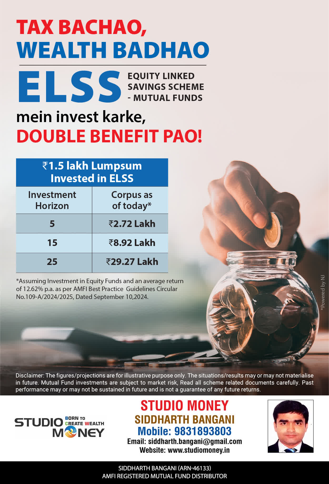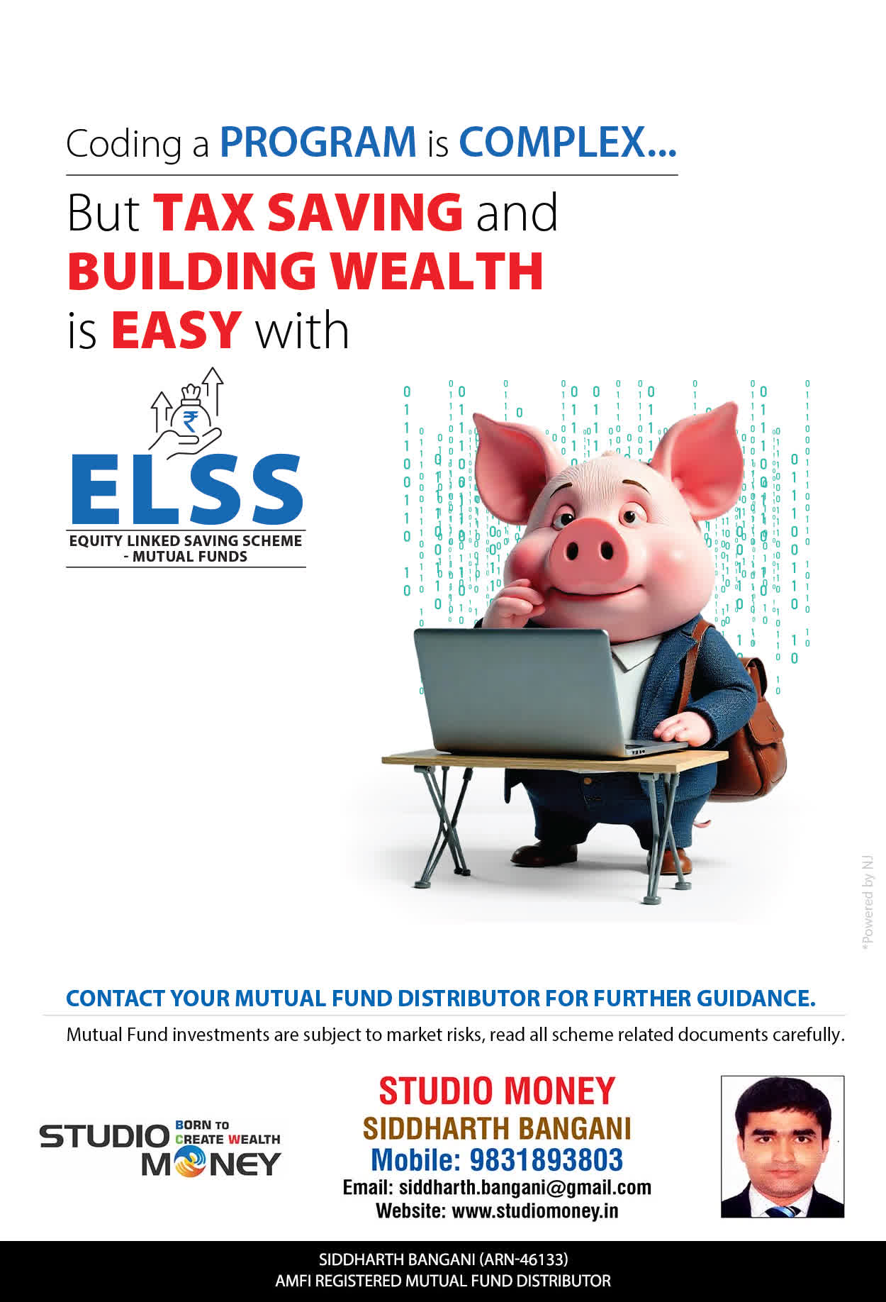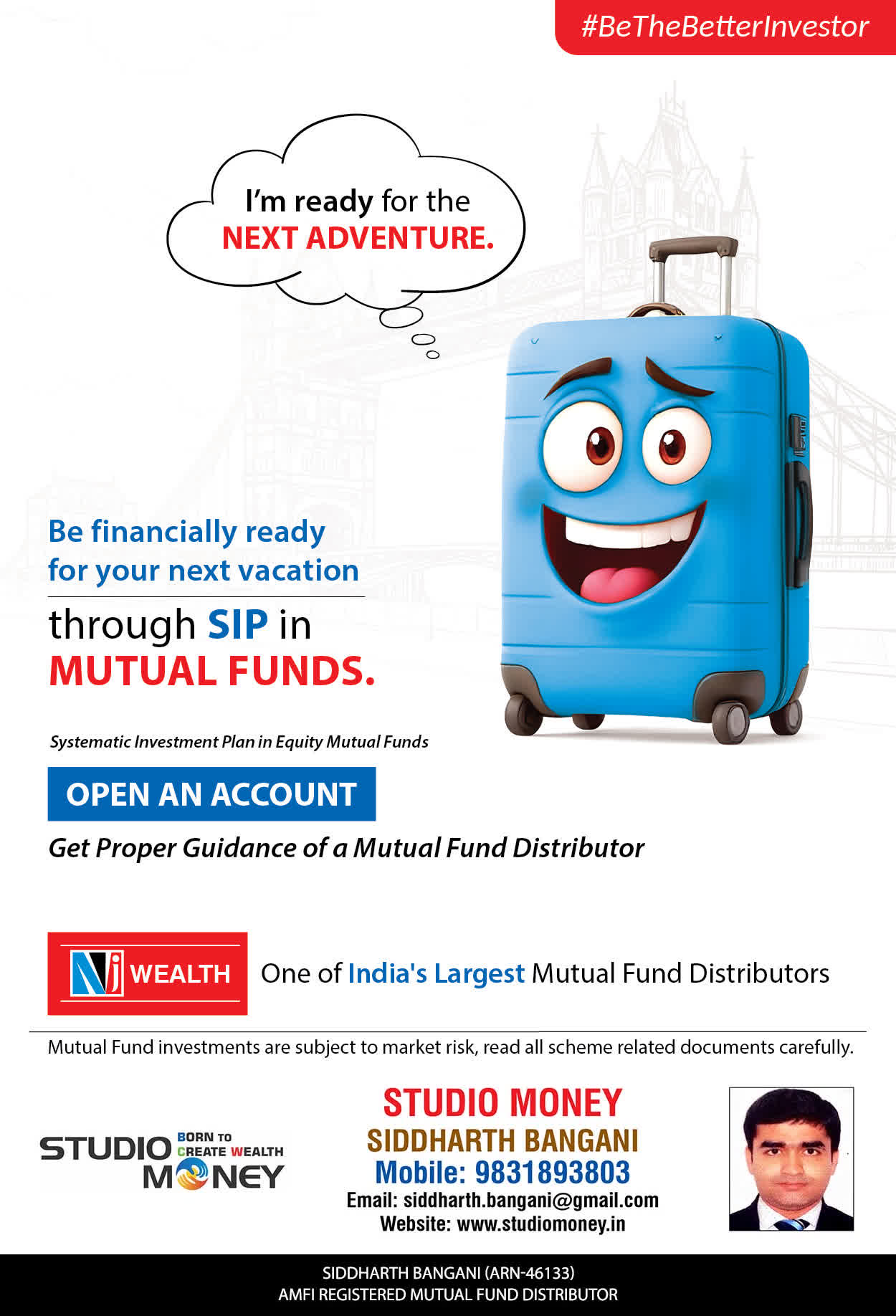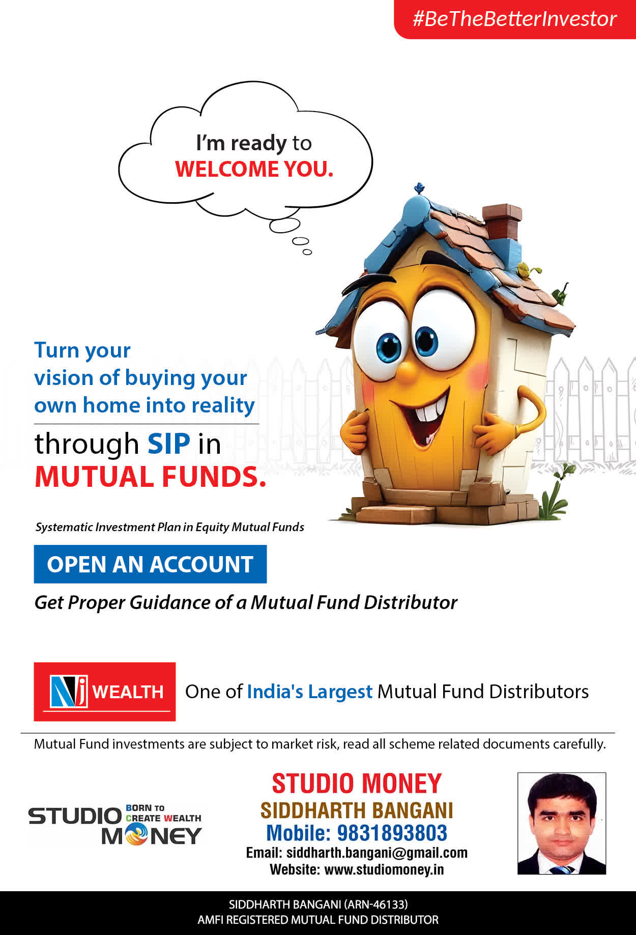 At STUDIO MONEY, our mission is to provide our clients with the comprehensive, competent, customised and classy best solutions in wealth creation and wealth management areas. We are driven to provide clients with simple, unbiased and uncluttered professional advice that adds value to their quality of life and results in actionable solutions.